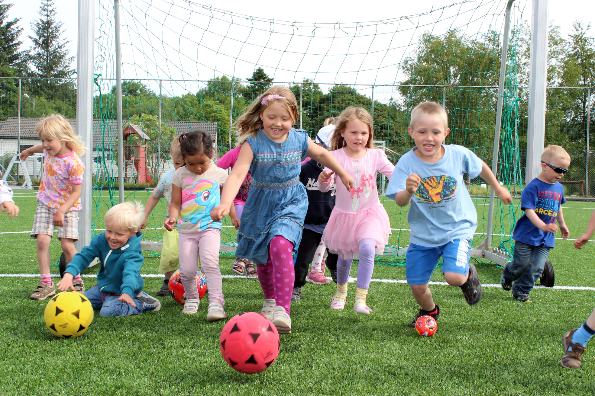 – Ja! Spille fotball!, roper de idet de løper på korte ben bort til den nye kunstgrasbanen.