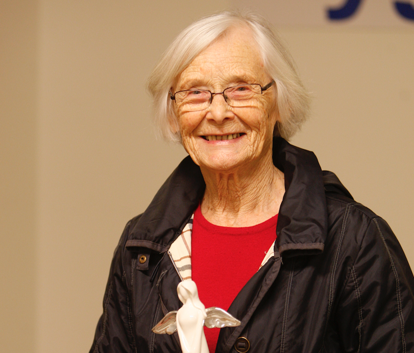 – Jeg er veldig rørt og overveldet. Er denne virkelig til meg?, spør en smilende Olga Holgersen da hun får overrekt «ukens engel».