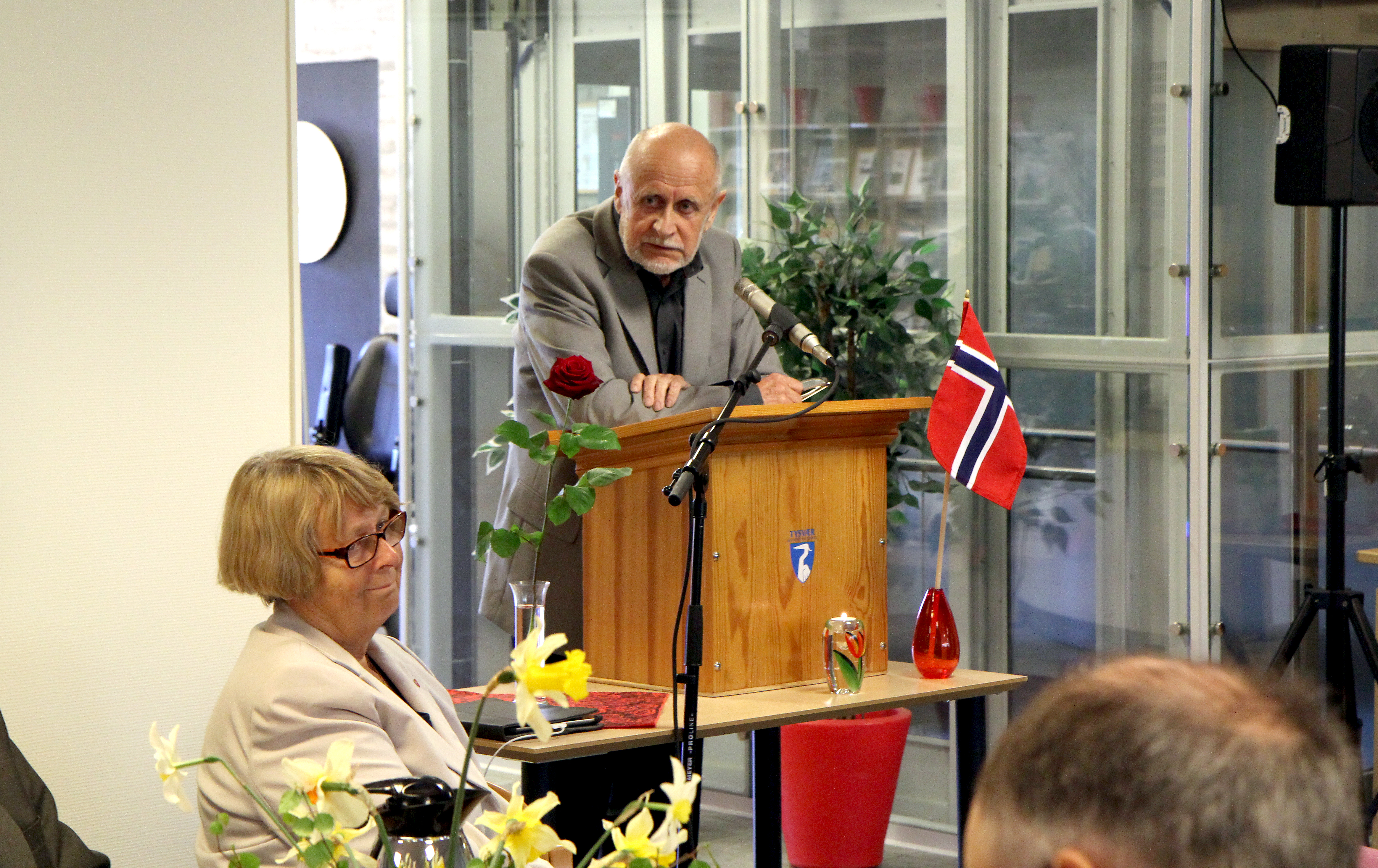 Den kjente SV-politikeren Kjell Jamne og leder i AUF Haugaland Sofie Løvland holdt apeller under 1. mai-frokosten i kommuneshuset i år. Begge snakket om likestilling, sosialisme, miljø, demokrati og rettferdighet. Og begge rørte mange i salen til tårer.
