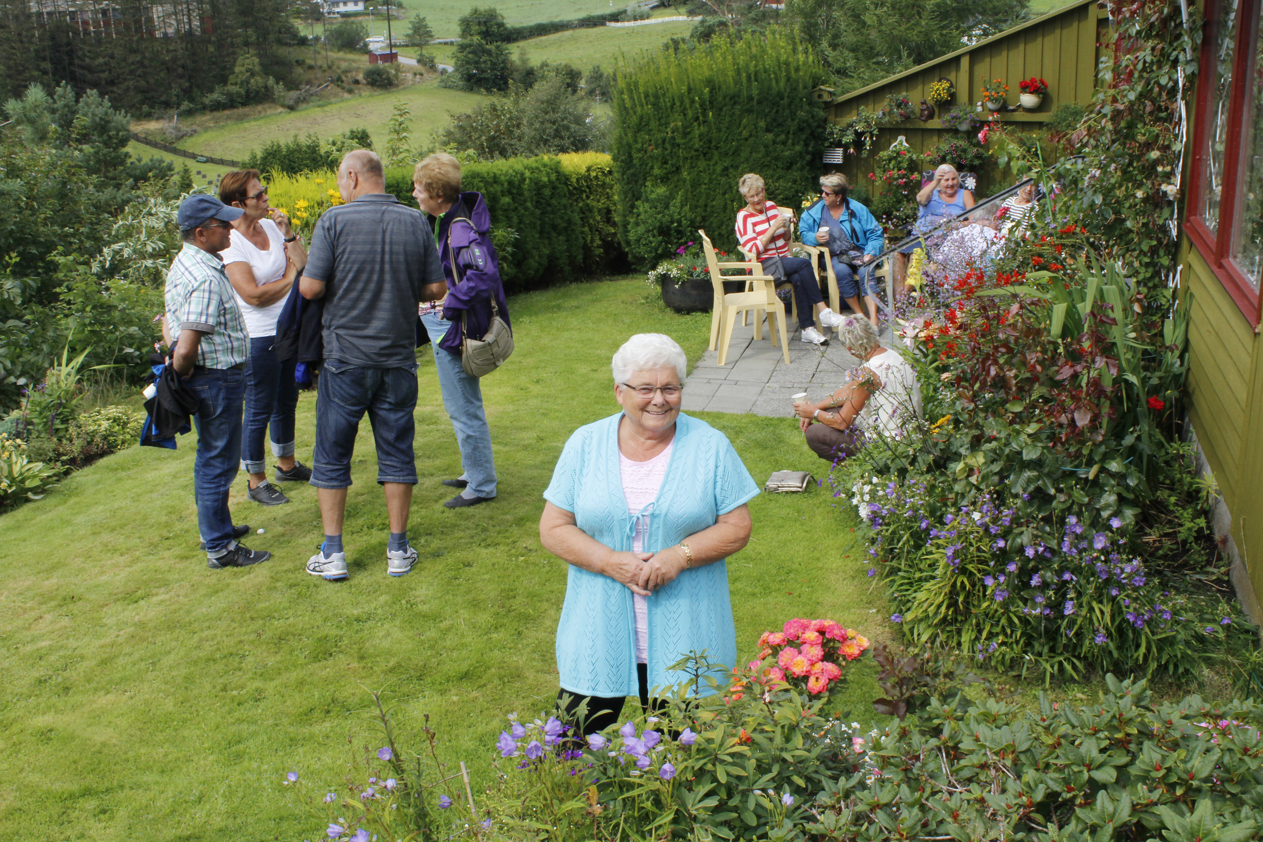 Synneva Gjerde er med i styret i Tysvær Hagelag, og det er bra med folk i hagen hennes i Granliveien 12c når vi stikker innom. Den 1,3 mål store eiendommen bugner av blomster og andre vekster.