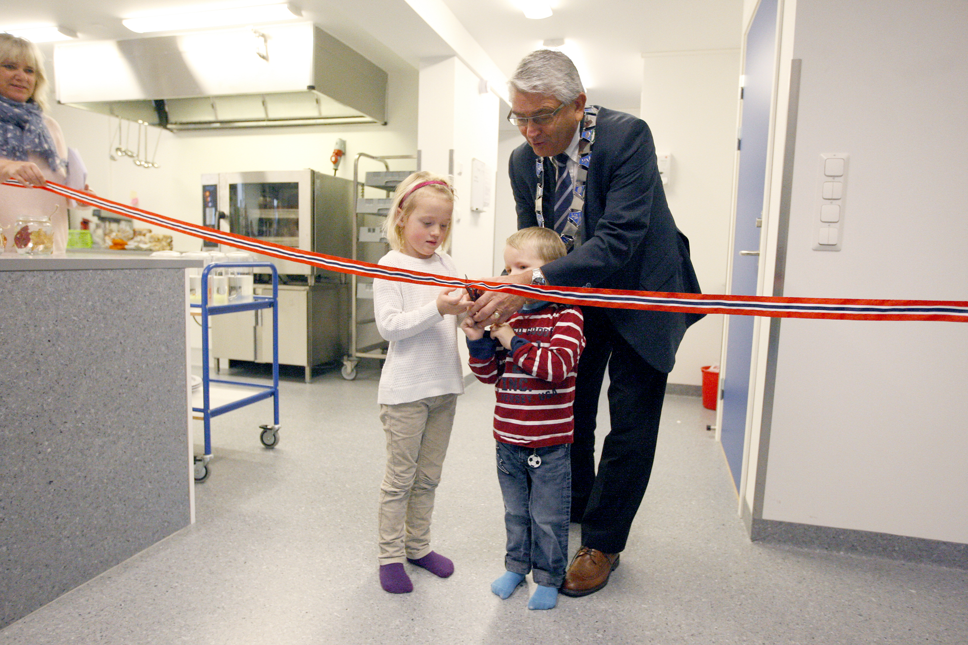 – No erklærer eg barnehagen for opna, sa han høgtideleg, mens han fekk hjelp av Leon Wee og Dina Svindland Grip.