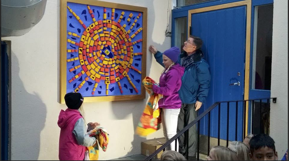 I 2. time gikk vi ut i skolegården der 1.-3. trinn dannet en stor sol og sang «En sol snurrer», før det hele ble avsluttet med at hele skolen, 300 elever og 50 voksne, danset årets bLIME-dans med FN-flagget vaiende i bakgrunnen. Et vakkert skue!