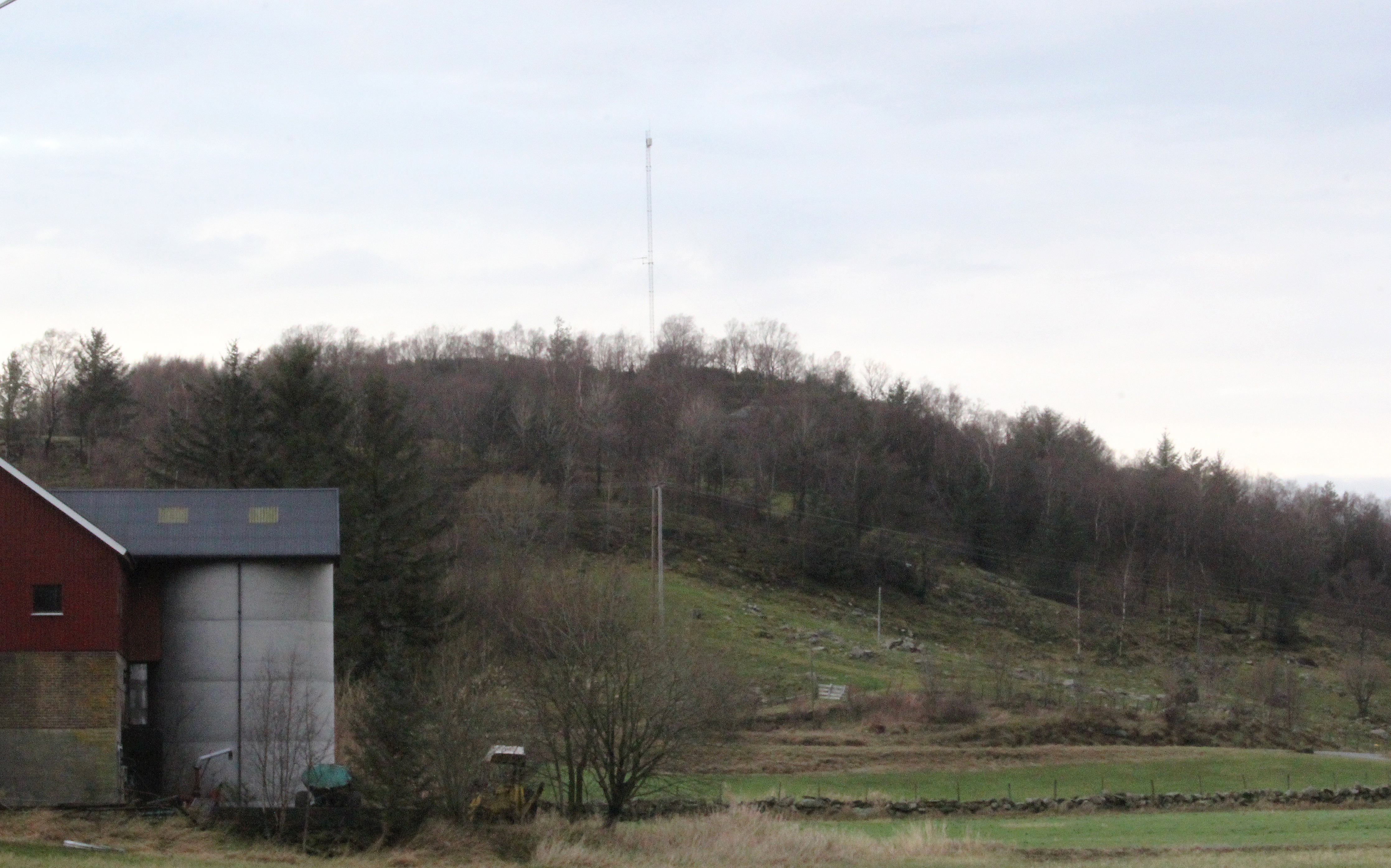 Slik ser testmasta ut. Her blir det kanskje vindmøllepark i framtida. Naboar har ikkje levert inn klager under høyringsrunden, men bygdefolk protesterar.