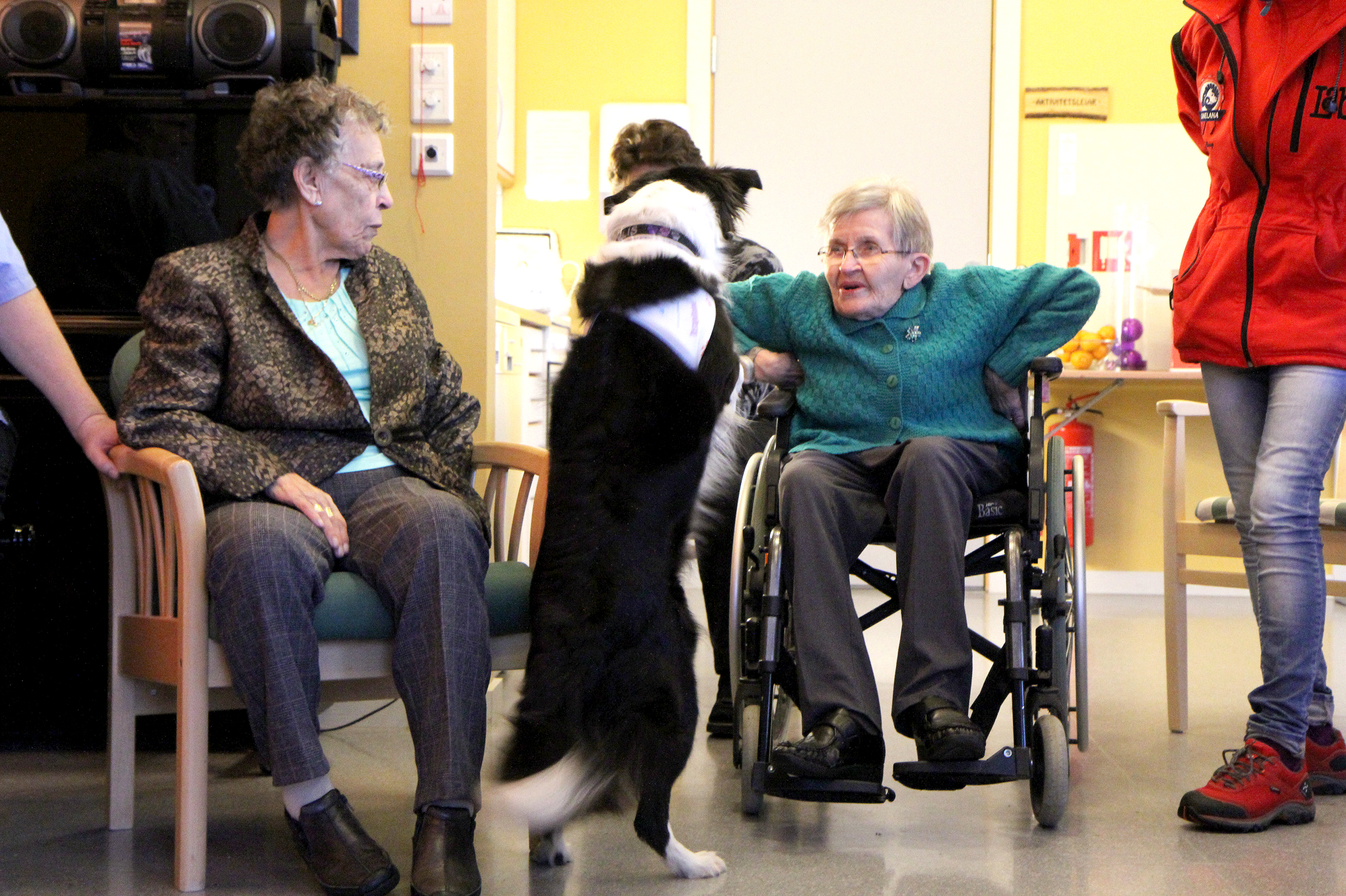 Det blei ein veldig annleis dag for dei eldre på omsorgssenteret i Nedstrand, då Kjellaug Selsaas og hundane hennar Flis og Ludvig kom på besøk.