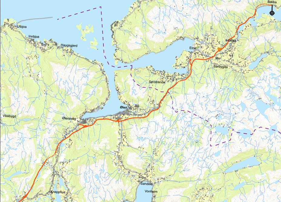 Tilknytinga til Ølensvåg bør bli lagt om eit kryss ved Ølensvåg.