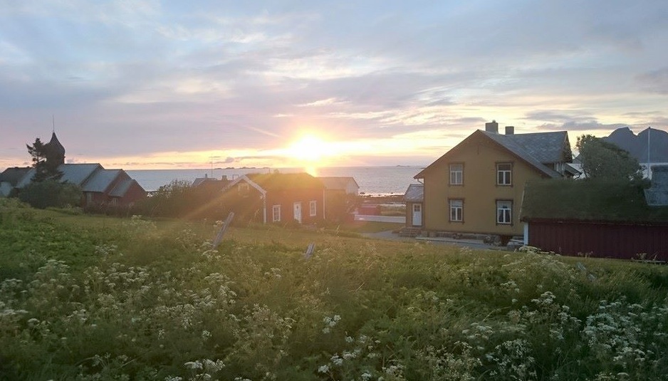 Neste natt var planen å bo i Stamsund. Så viser det seg at Anne Gerd, som jeg var russ med i 1967, driver Lofoten Guesthouse der. Vi hadde ikke sett hverandre på 48 år. Det ble nok en trivelig overnatting og fjelltur ved Henningsvær. Ved Flakstad kirke er det en bobil. Jeg sier hei, og så viser det seg at det er Stengårdbakkens fra Skånevik, hun opprinnelig fra Tysvær. De andre jeg snakker med er to syklister fra Bodø. De ser navnet mitt på sykkelveska og spør om jeg ikke er fra Førre og var nabo med hennes onkel. Bente Landa Haukås er fra Vats og har mye slekt i Førre. Hun er også en av norges beste kvinnelige syklister og Krf-politiker i Bodø.