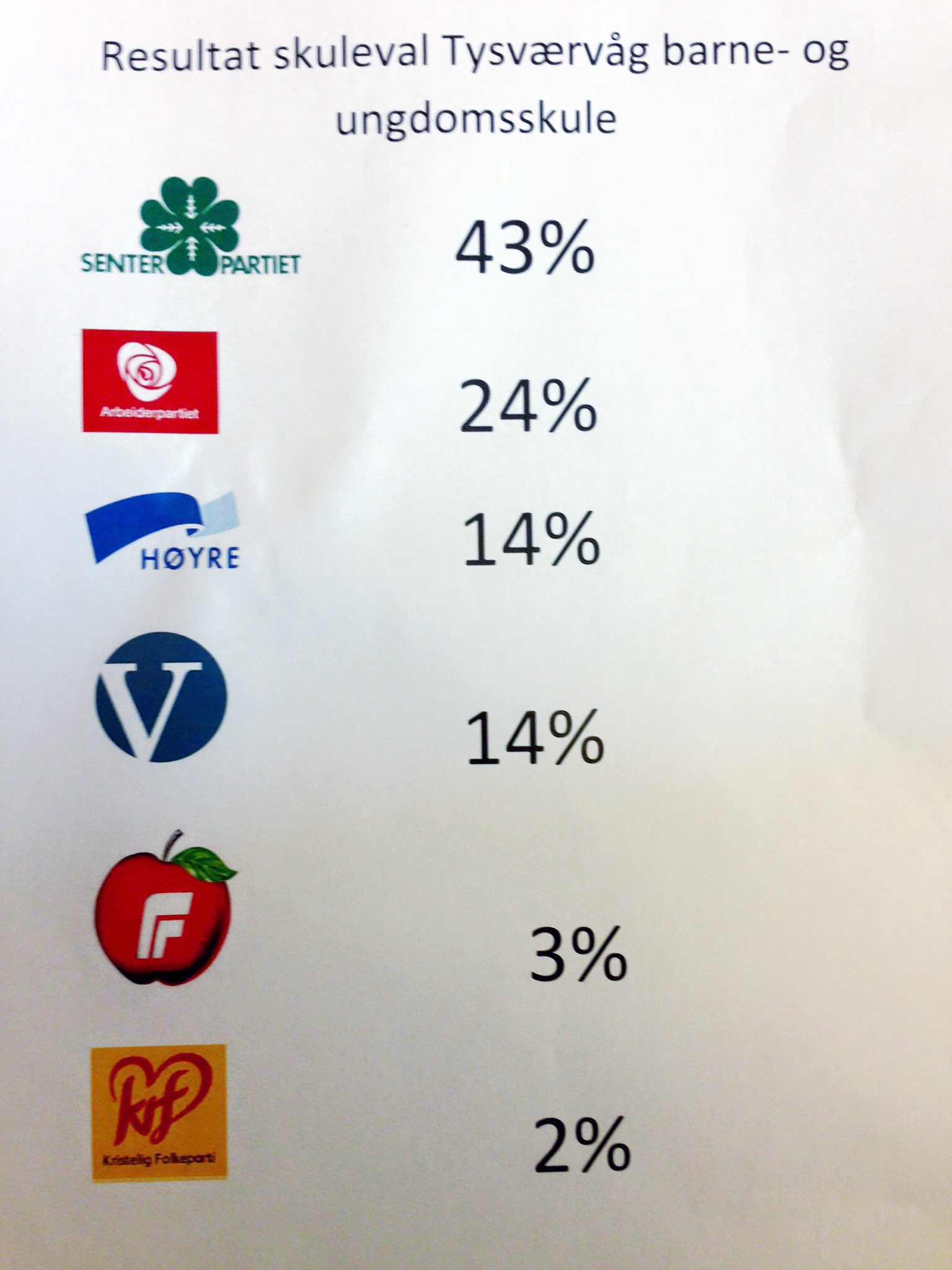 Her er resultata frå dagens skuleval i Tysværvåg: