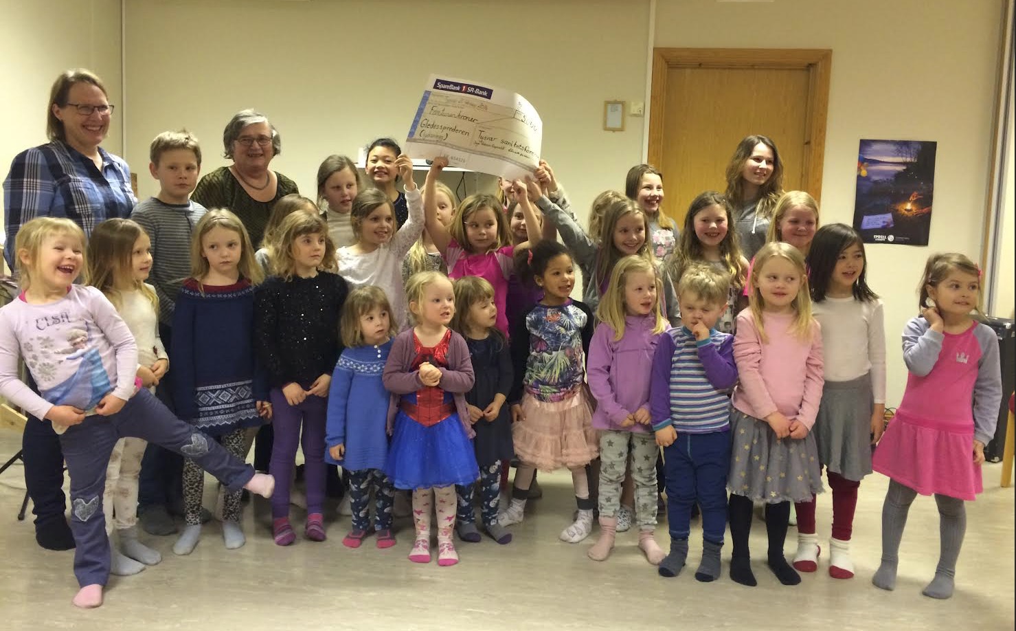 Ho ga koret ein sjekk på kroner 5.000. Sjekken var øyremerka «lydanlegg», som kan brukast til øving og små arrangement. Eit av måla med å drive barnekor er at barna skal få utvikla seg både når det gjeld song, men også gjennom andre måtar å formidle til andre. Då er det greit å bli fortruleg med mikrofonbruk. Gledesprederen øver på dette ved å fortelje vitsar og å syngja for kvarandre. Solistane treng også å øve med mikrofonar. Hittil har koret hatt ein gammal gitarforsterkar og ein mikrofon med tape på når øvingane har vore i andre rom enn Storsalen på Soknehuset. Nå ser me fram til ein nyare og betre løysing!