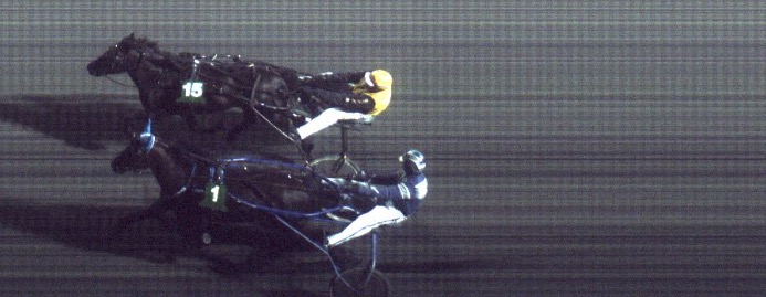 Som bildet viser var det utrolig lite som skilte Pøylefanten og Svein Ove Wassberg fra seieren. Den gikk til 8. valget Valle Tiril og kusken Jørn Bjaanes.