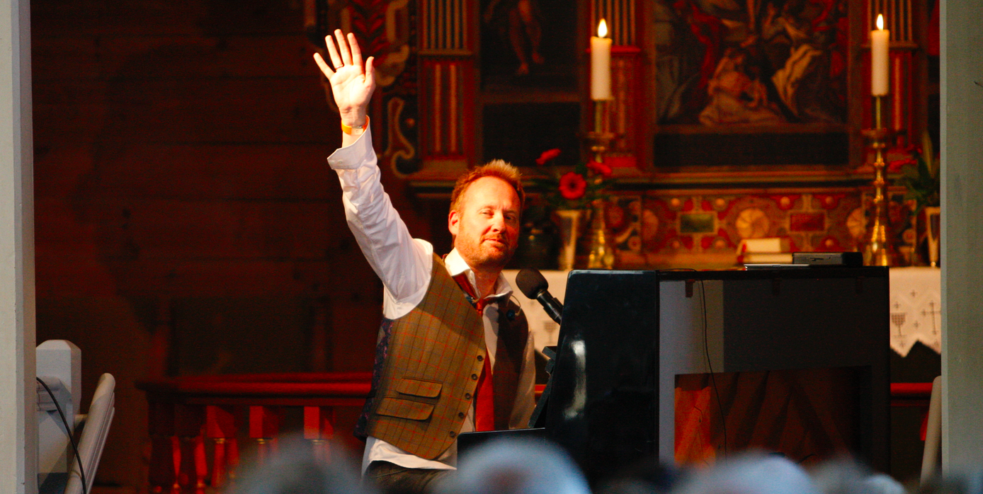 Alene med sitt piano valgte Stavanger-artisten å spille fra hele sin utgivelsekatalog, og fikk respons for det. Nær 250 personer hadde funnet veien, og skal en tolke stemningen både under og etter konserten, så var det innertier. Muntre historier, et par små lystige tekstbommerter, krydret med nydelige sanger og hits, var akkurat det de ville ha.