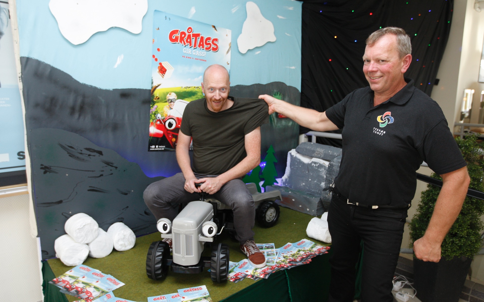 – Vi fikk en flott traktor i gave da vi var og så førpremieren på filmen. Den har Frode nå brukt i utstillingen som står i Tysværtunet. Vi tenkte at den var så flott at vi ville gi den bort til noen av Tysvær Bygdeblad sine lesere. Svar på spørsmålet, så kanskje den blir din. Vi trekker en heldig vinner på onsdag, sier kinosjef Øystein Simonsen.