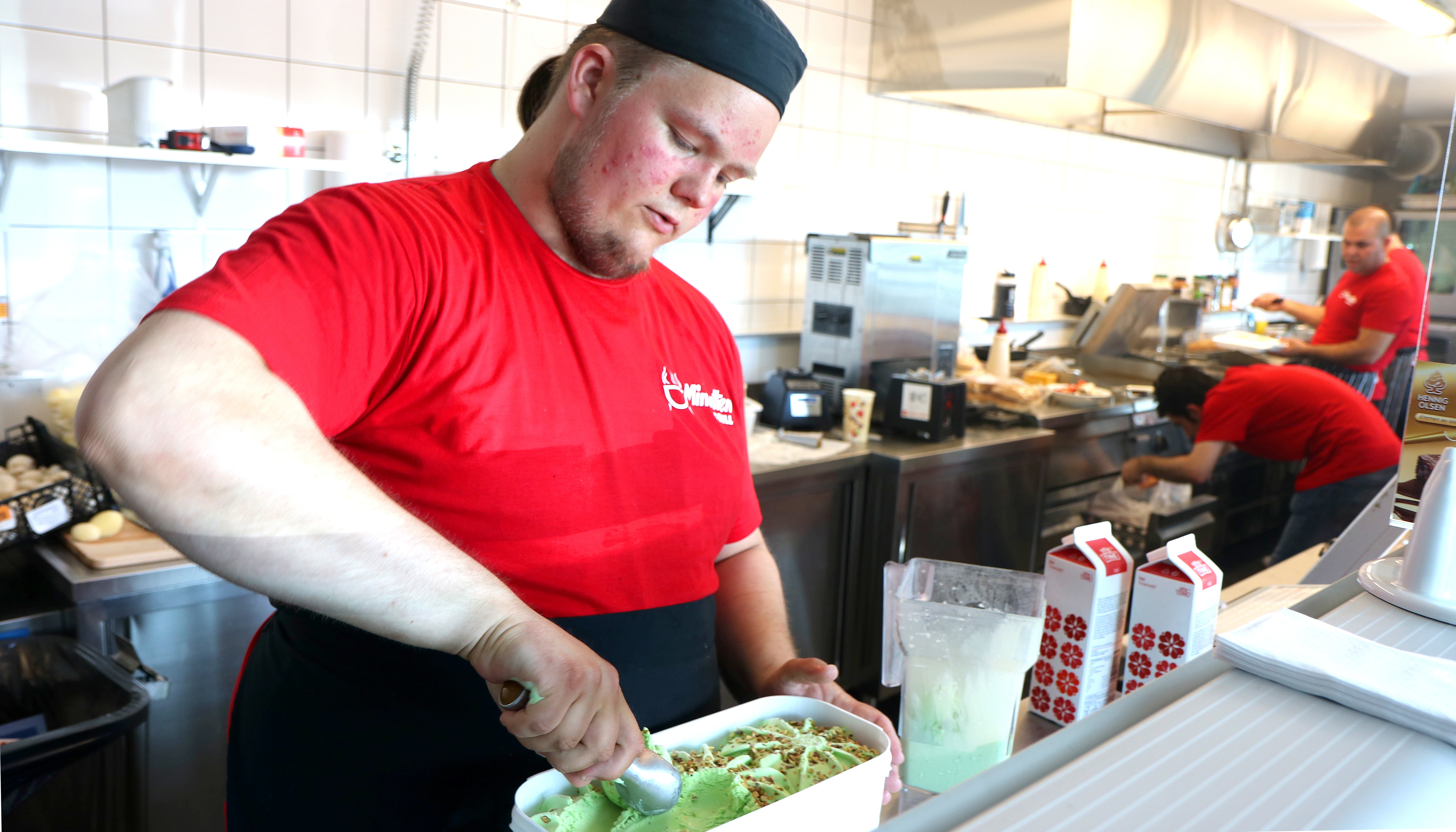 – Dette var litt av ein start. Kjekt å sjå at så mange har gått med seg at me opnar i dag. Og veldig mange kjem innom for å bestille seg milkshake. Det er tydeleg at den har vore sårt sakna, seier tilsett Joakim Aanestad, mens han i høgt tempo, lager den tradisjonsrike og kjente «Minutten-milkshaken» til kundane.