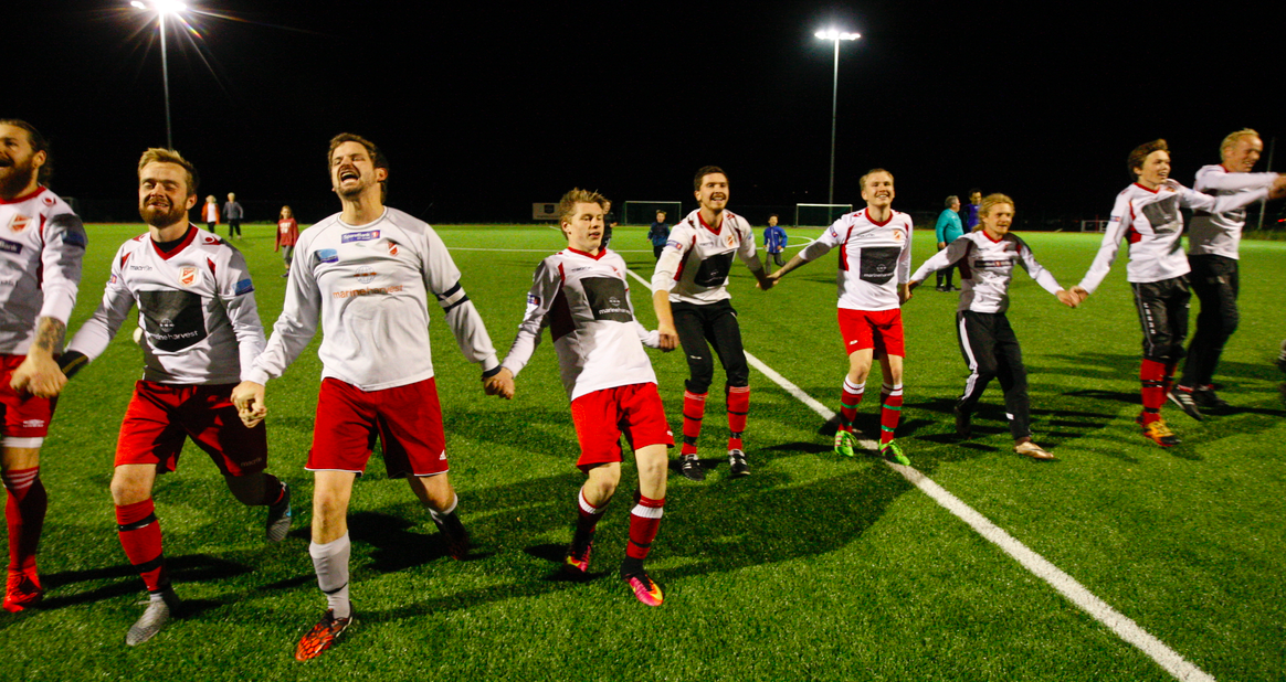Det var en litt preget kaptein som mottok publikums hyllest etter kampen. Med litt alkoholfri sjampis og et kakestykke i hendene var han tydelig stolt over laget og av bygda.