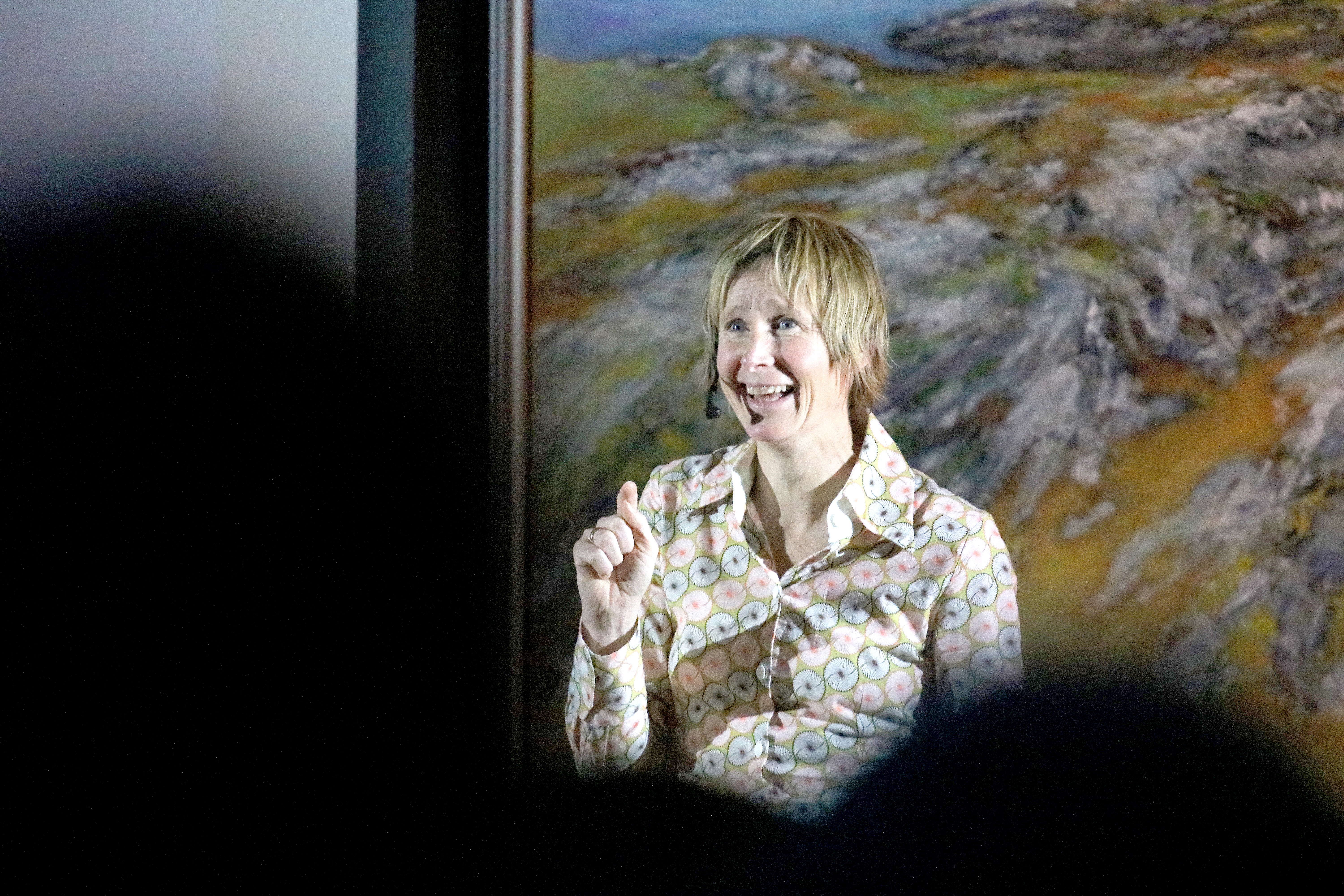 Deretter var det Linda Eide sin tur. Den morosamme NRK-dama fekk publikum til å både gruble og le høgt.