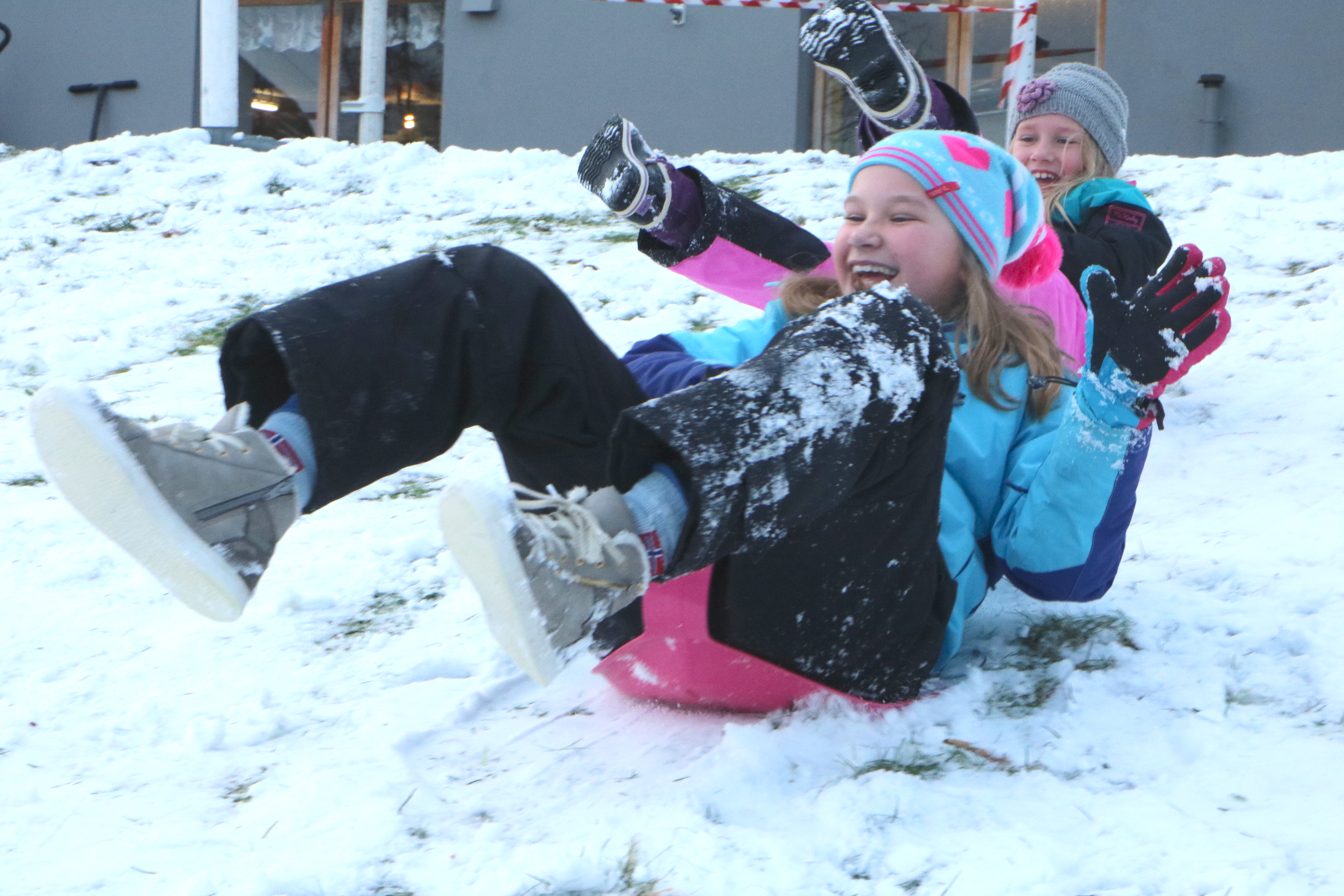Mange ungar hadde med seg akebrett på Jul på landet i år. Blant dei var Synniva og Linnea.