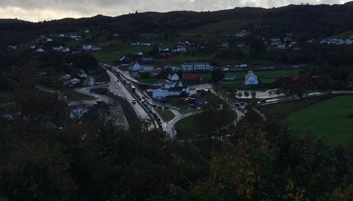Utover ettermiddagen løste trafikken seg opp. Det er svært vanskelig å velge alternative ruter når en står i køen mellom Grinde og Raglamyr. En del valgte å legge turen innom byggefelt for å prøve å komme seg frem. Det er ikke å anbefale på denne strekningen.