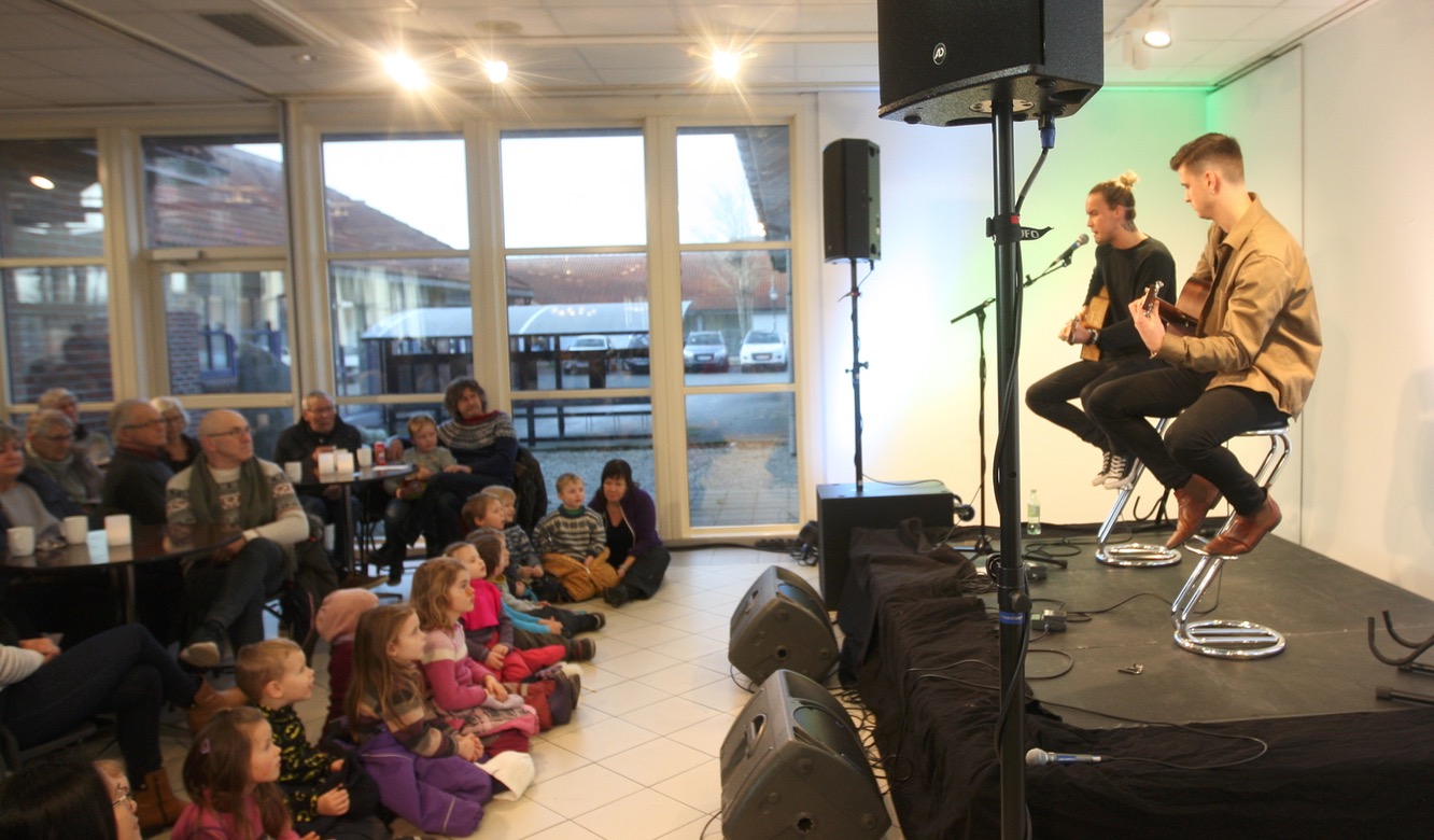 For de var litt overraskende der de kom ruslende med sine gitarer. Foajeen var nemlig fylt opp med liten og stor.