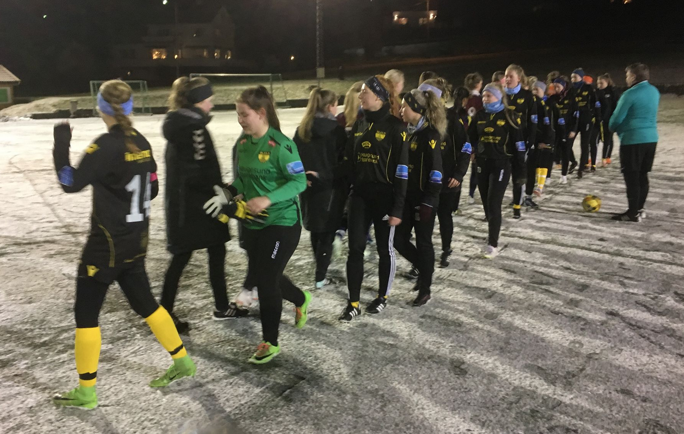 Treneren var mest imponert over at jentene sto på gjennom hele kampen, på en snødekt kunstgressbane i Grinde.