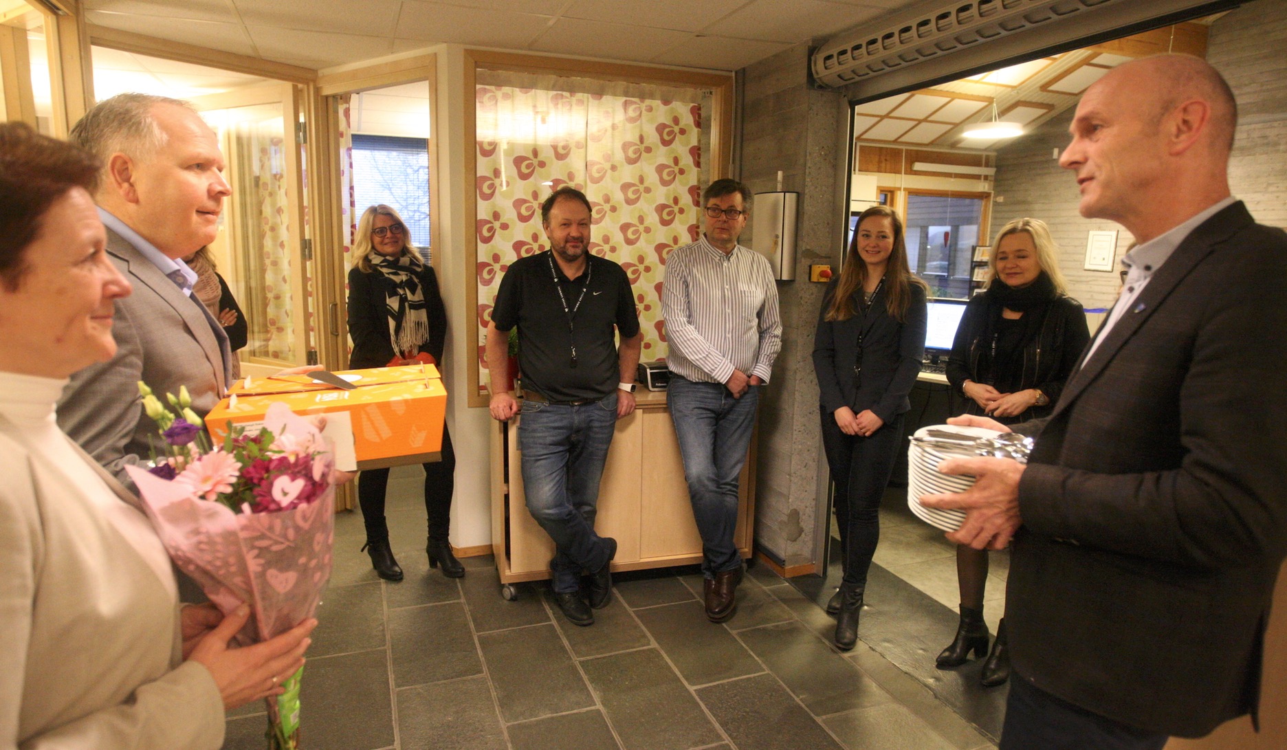 Og en stor marsipankake falt i god smak, for gjengen som hver dag tar i mot besøk, telefoner, e-poster, og som også hjelper til med byggesaker og annet.