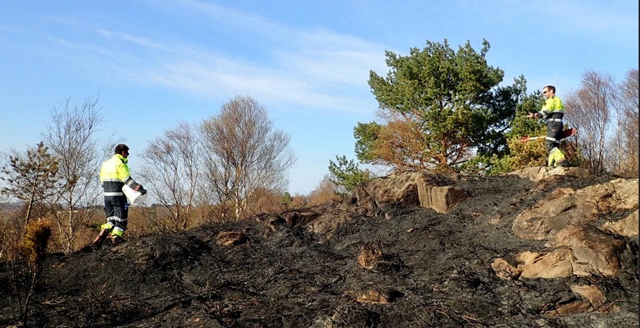 Foto viser stedet de stoppet brannen der den gikk i retning hytter tirsdag.
