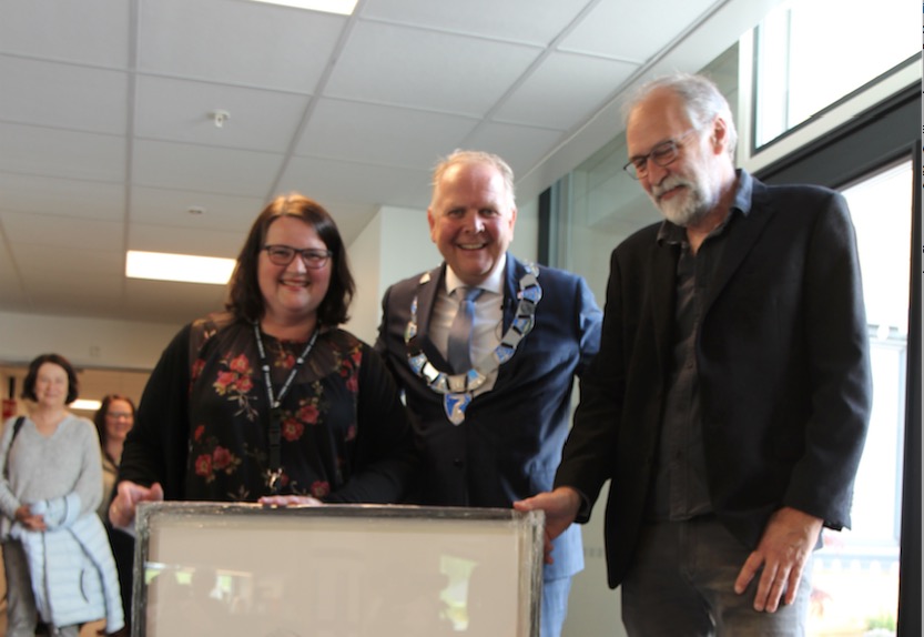 Ordfører Sigmund Lier hadde med seg gode ord og et trykk av den lokale kunstneren Liv Sørvåg.