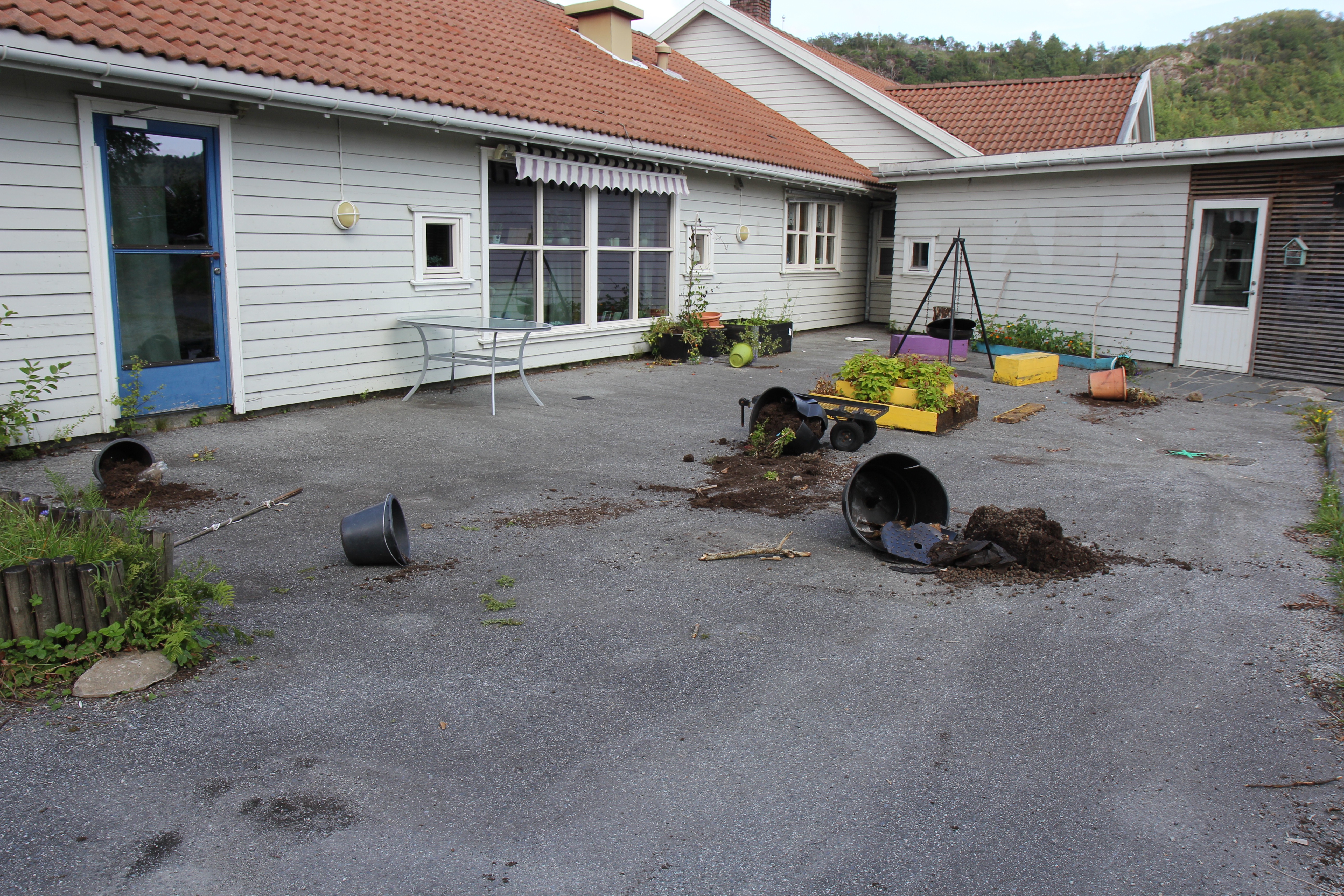 Ølstørn har arbeida ved dagsenteret sidan april i år, og fortel at det heile fem-seks gonger har vore nokon å øydelagt det dagsenteret har laga til på uteområdet sitt.
