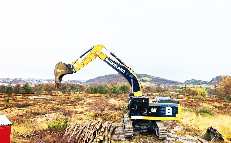 Birkeland Maskinentreprenør AS er i full gang med å grave på parkeringsplasstomta. Foto: Birkeland Bilde 1 av 1