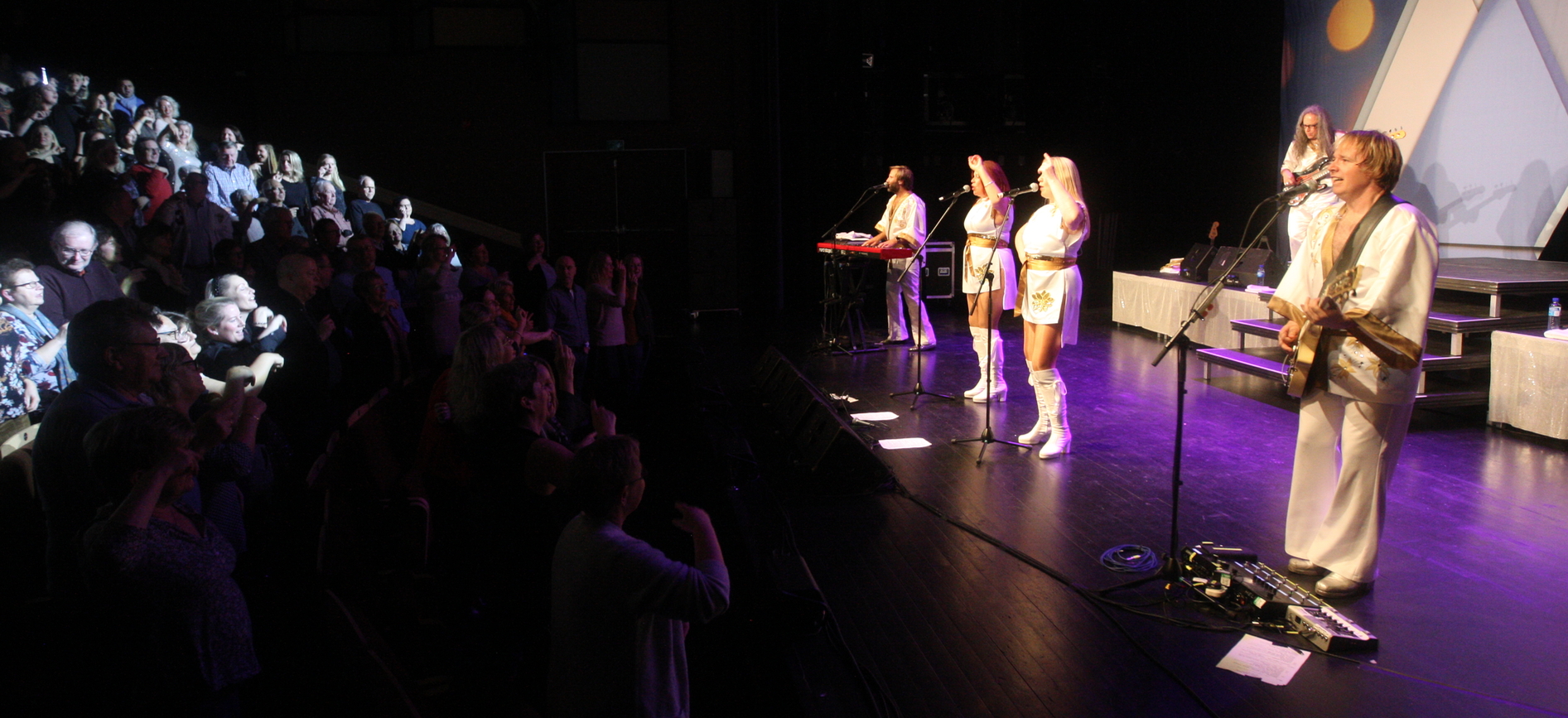 Nå er ikke gjengen i ABBA 1974 noen kopi av ABBA. de er et hyllingsband som byr på seg selv og lager et show og en fest ut av sangene tydeligvis alle i salen kunne på rams. Det haglet hits over salen og folk var med. I tillegg fyrte de to guttene i bandet av en Bon Jovi «rakkare» med «Living on a pryer» som pauseunderholdning mens jentene skiftet antrekk. Den så jeg ikke komme, og publikum takket og bukket og gulvet i storsalen ristet i takt.