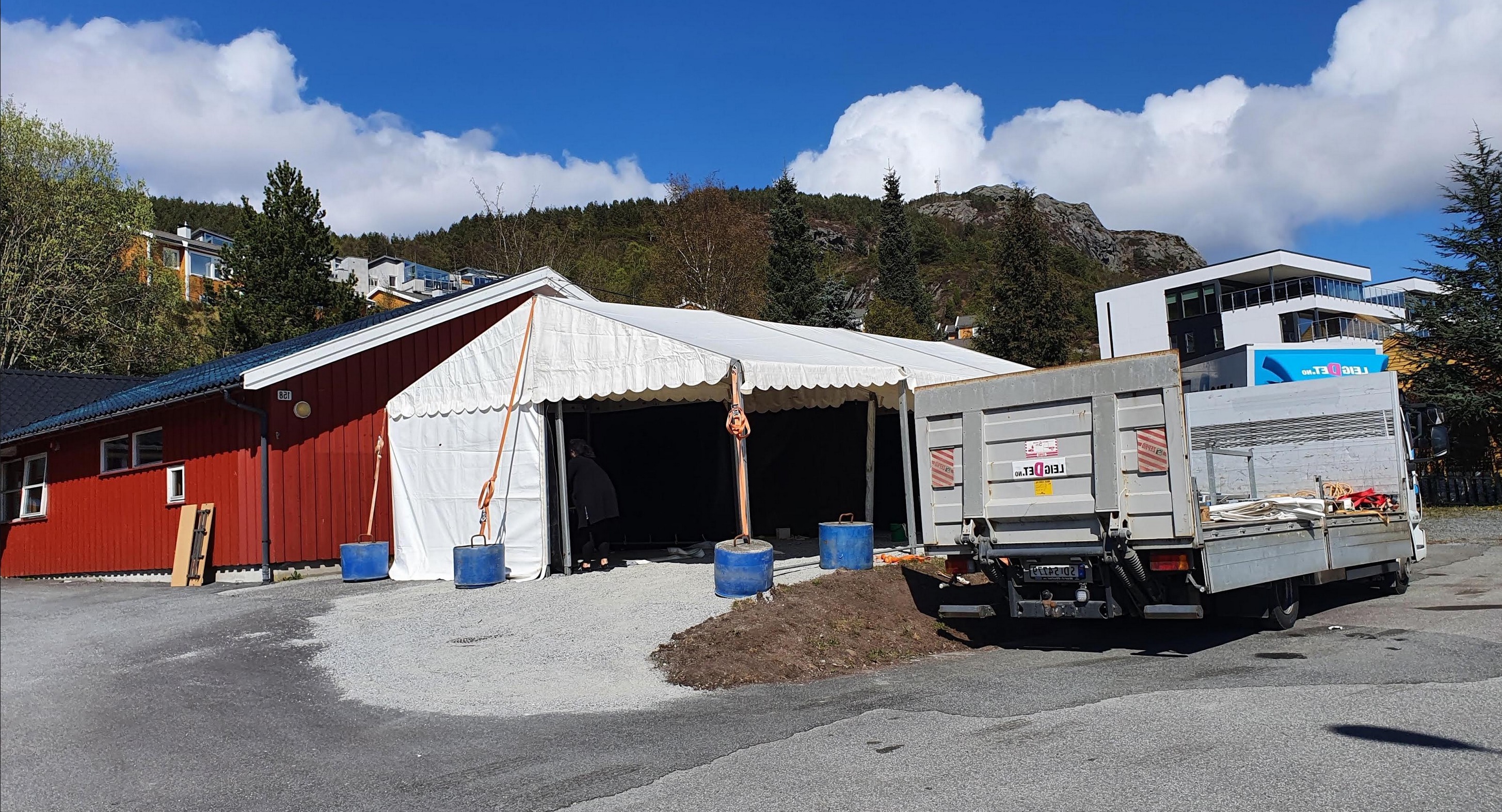 – Det planlegges for testing av 5 % av innbyggerene i kommunen per uke, vi setter derfor nå opp et telt i relasjon til Test-senteret i Aksdal bak kulturhuset, dette for å effektivisere testingen og teste flere samtidig.