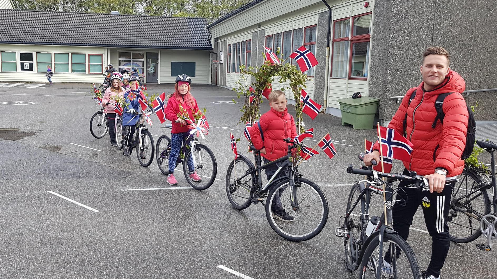 Om det ikkje blir skikkeleg barnas dag på 17.mai i år, så har me i alle fall prøvd å lage litt 17.mai-stemning for ungane på Straumen skule denne veka. I kohortane har dei hatt 17.mai-leiker, songar, tog, is og pølse i brød. Og i dag dro 5.kl. på 17.mai-sykkeltog til speidarplassen med skikkeleg pimpa 17.mai-syklar. Nokon var på Notaflot og nokn var på skulen. SFO laga eiget korps og gjekk forbi barnehagen. No er me klar for ei fin helg og ein god 17. mai. GRATULERER MED DAGEN PÅ SØNDAG!