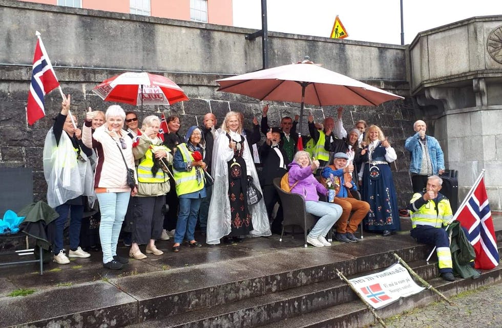 Engasjerte folk var møtt fram, kledd i bunad og bærende på flagg.