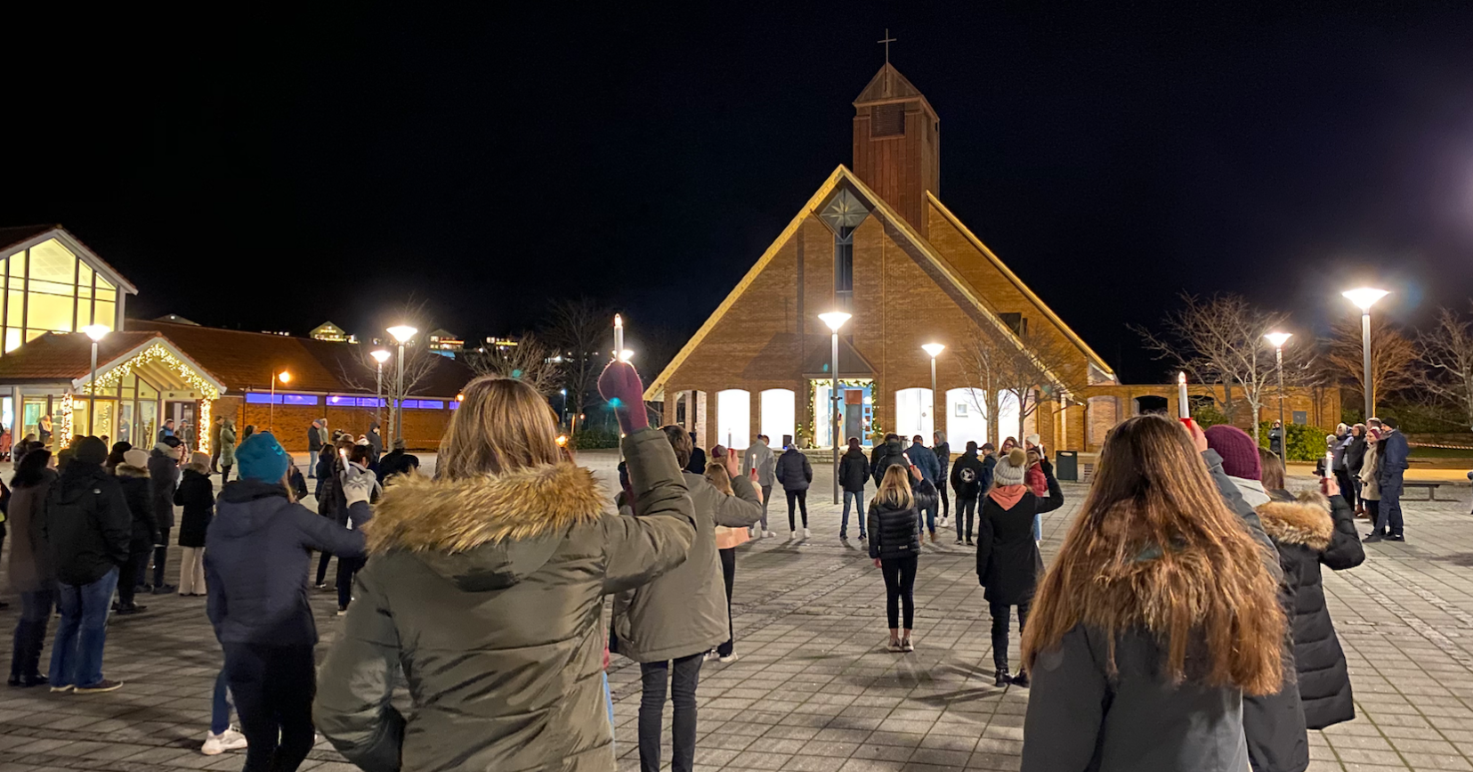 Mange hadde kommet for å se og høre under kveldens lysmesse, ute, ved Aksdal kirke.