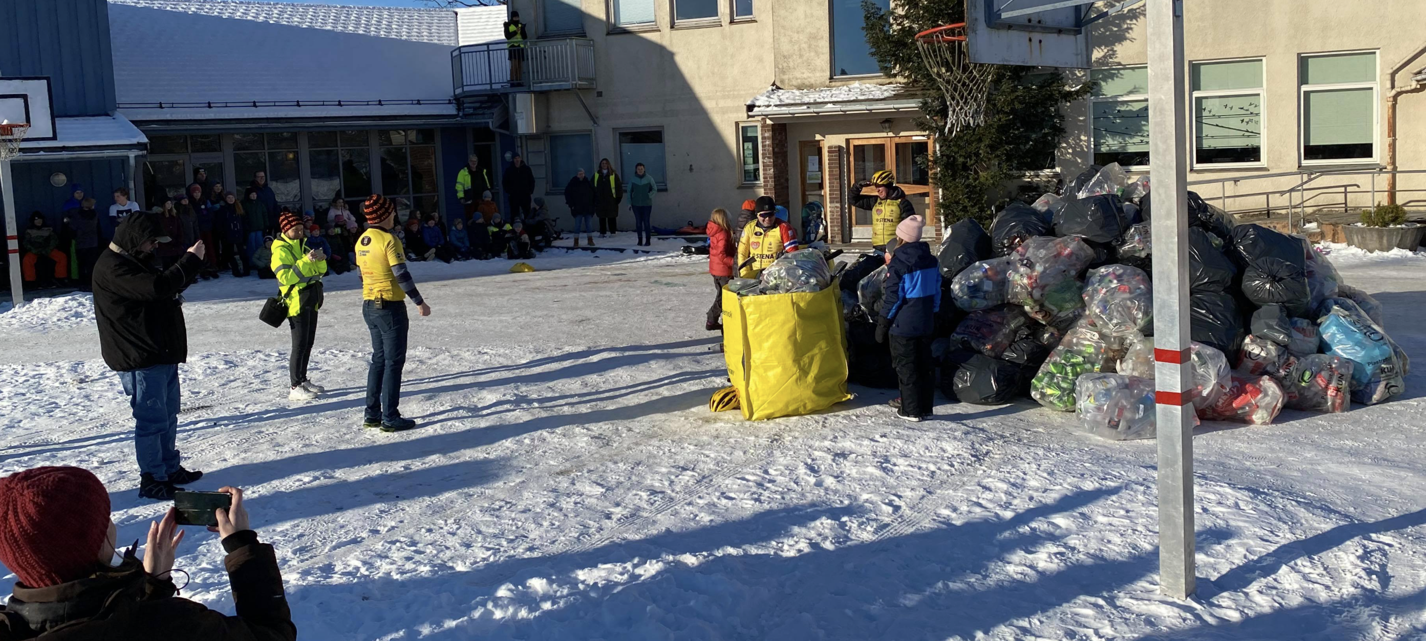 Elevane har samla inn heile 7022 panteeiningar! I dag kom Henning Aarekol og Team Rynkeby for å hente panten, kor syklister frå Team Rynkeby kom syklande for å hente panten. Utfordringa med å få med seg panten blei for stor, så då blei ein lastebil tilkalla!
