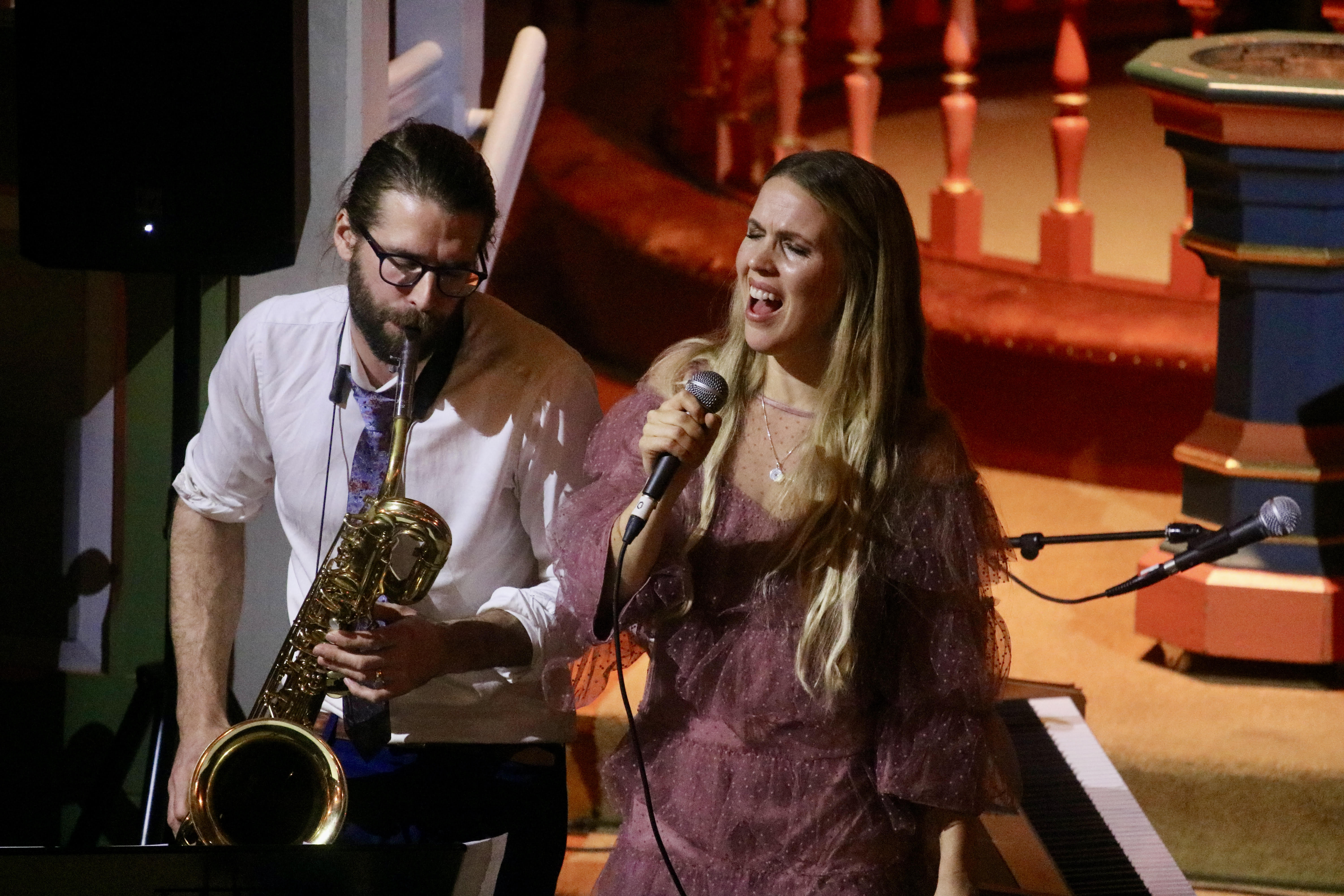 Erik og Amelie Aldner skapte nydeleg julestemning i Nedstrand kykje med mellom anna saksofon og vakker songstemme tysdag denne veka.