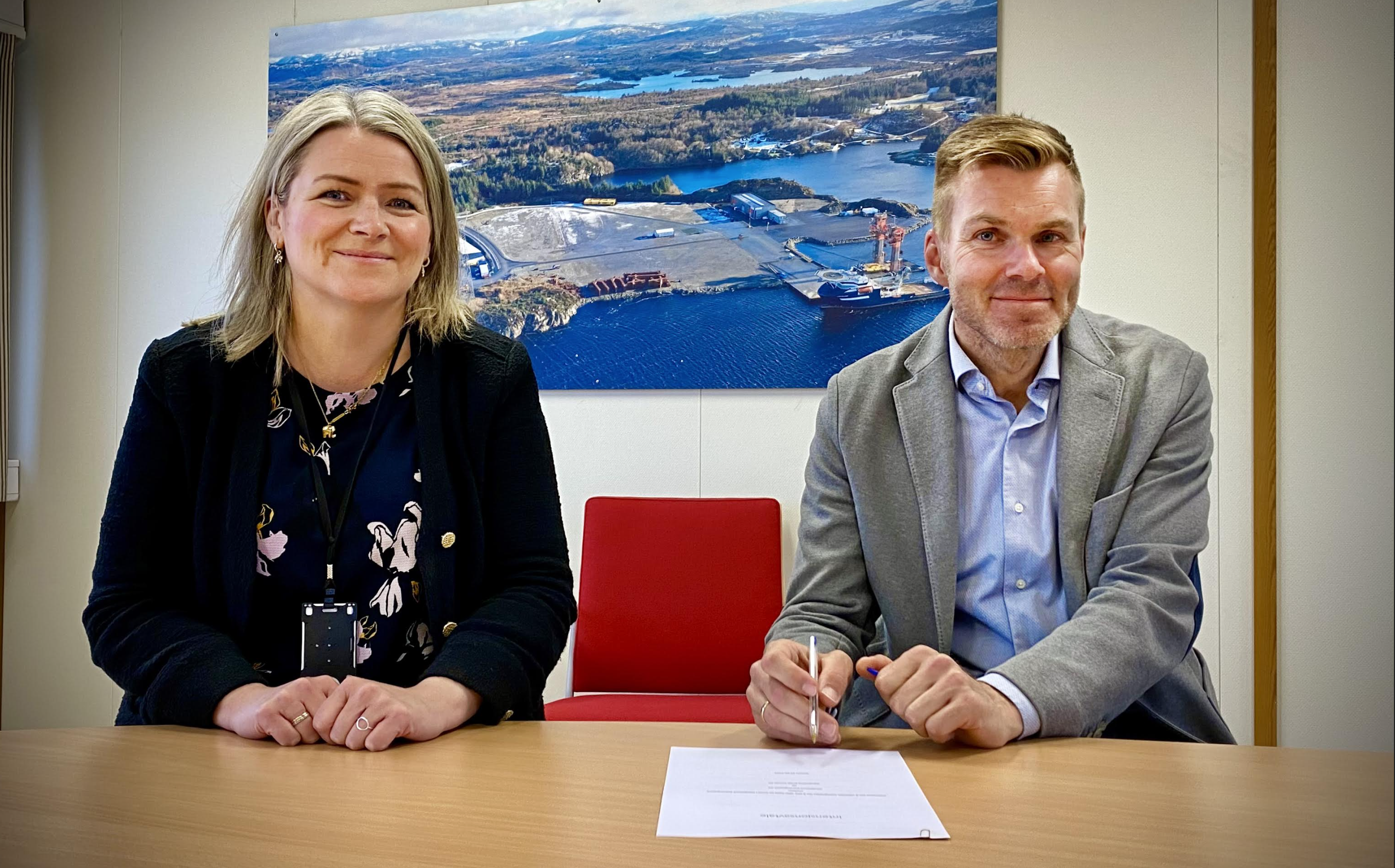 På bilde fra venstre er daglig leder i Haugaland Næringspark, Tiril Fjeld og administrerende direktør i Endra, Kristian Gautesen. Foto: Bjarne Laastad /PYX