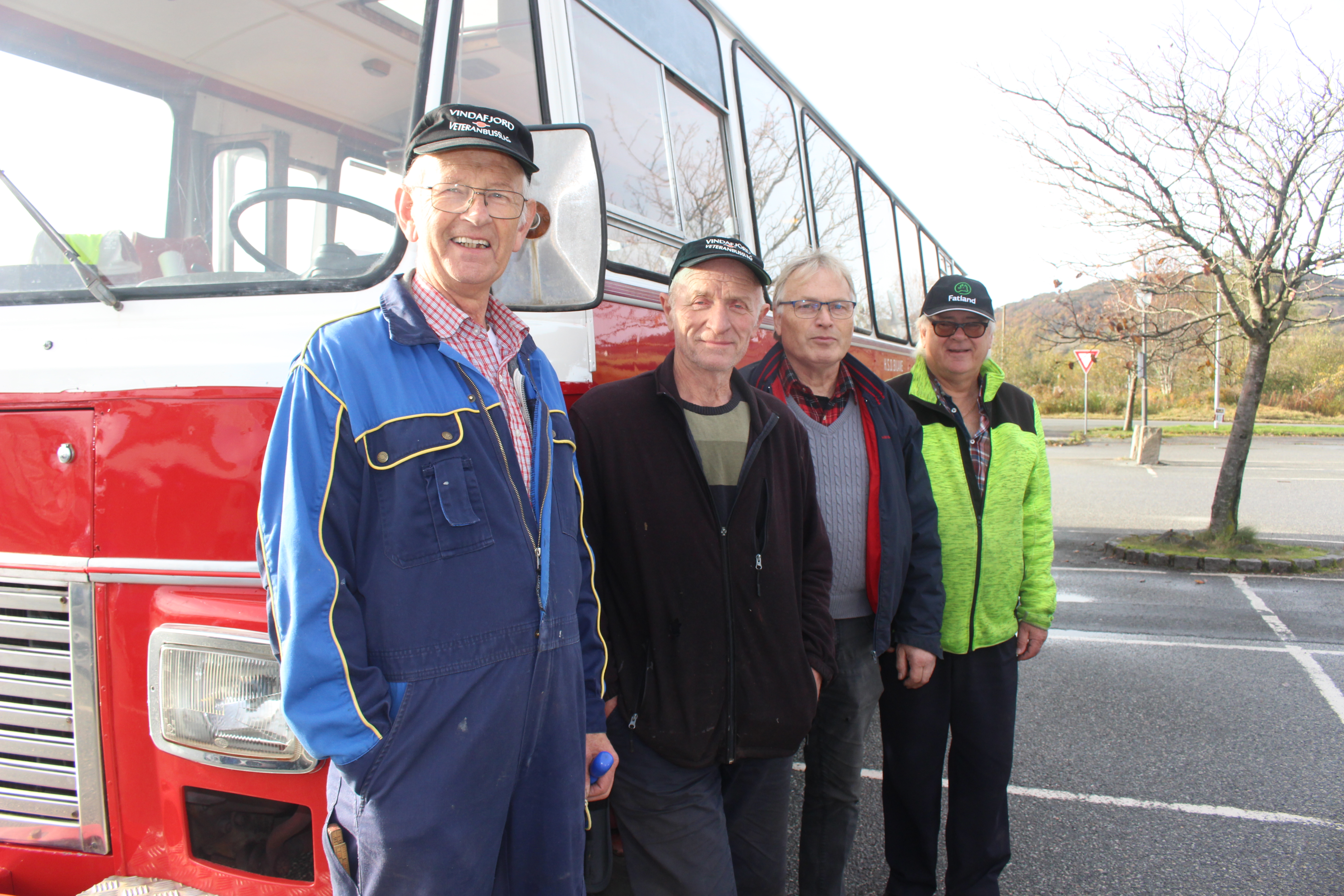 Veteransjåfører i HSD er blitt ildsjeler i veteranbusslaget. Her er Tormod Kirketeig, Kjell Førland, Jan Georg Tindeland og Svein Skjold.
