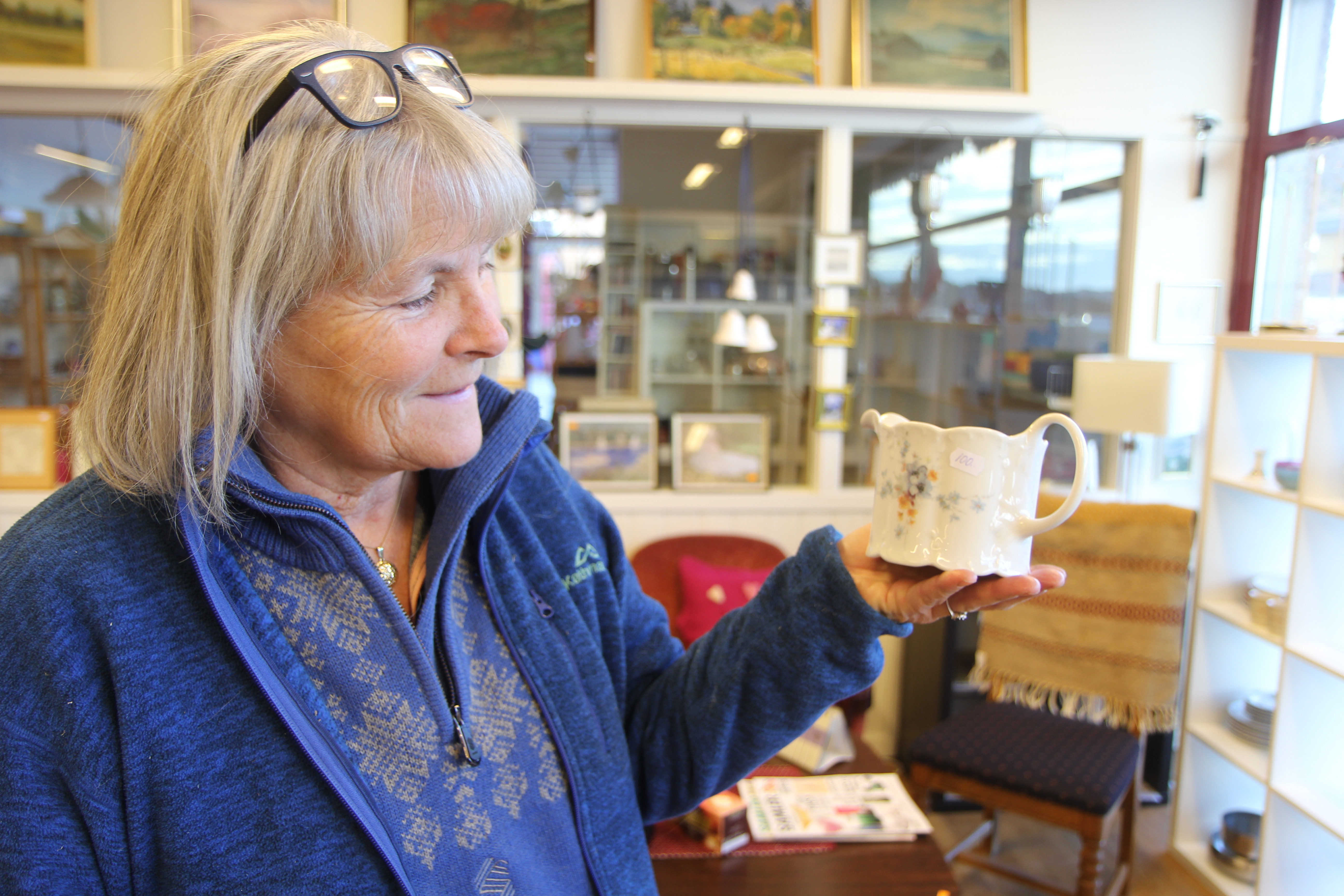 Gro Waage trives som kremmer. – Det er en historie bak alle varene våre. Denne fine vaniljemuggen har nok blitt brukt på julaften før. FOTO: Ada Hirzel SandvigBilde 1 av 2