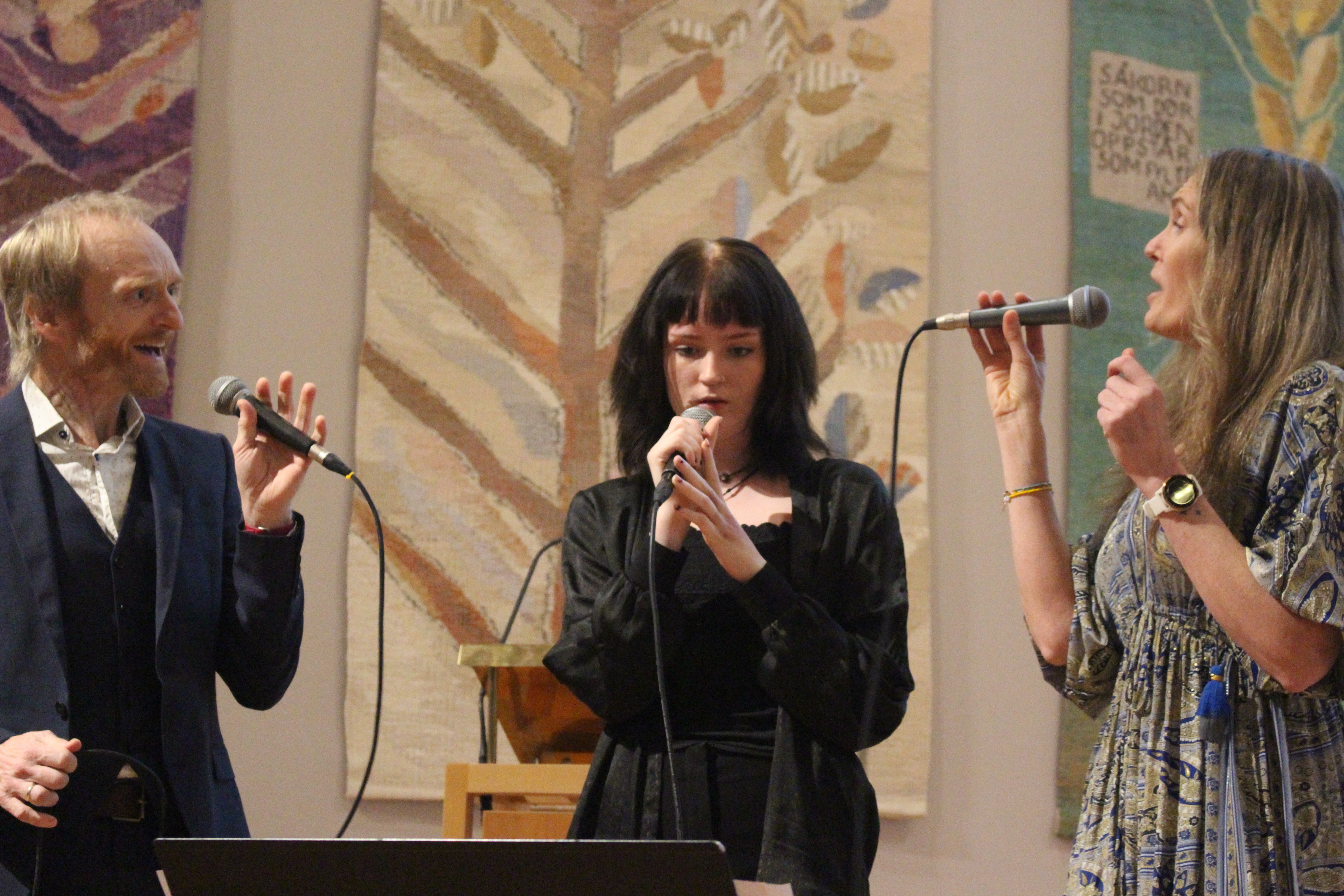Øyvind, Maria og Sandra Kvammen Aksland underhaldt med vakker song.