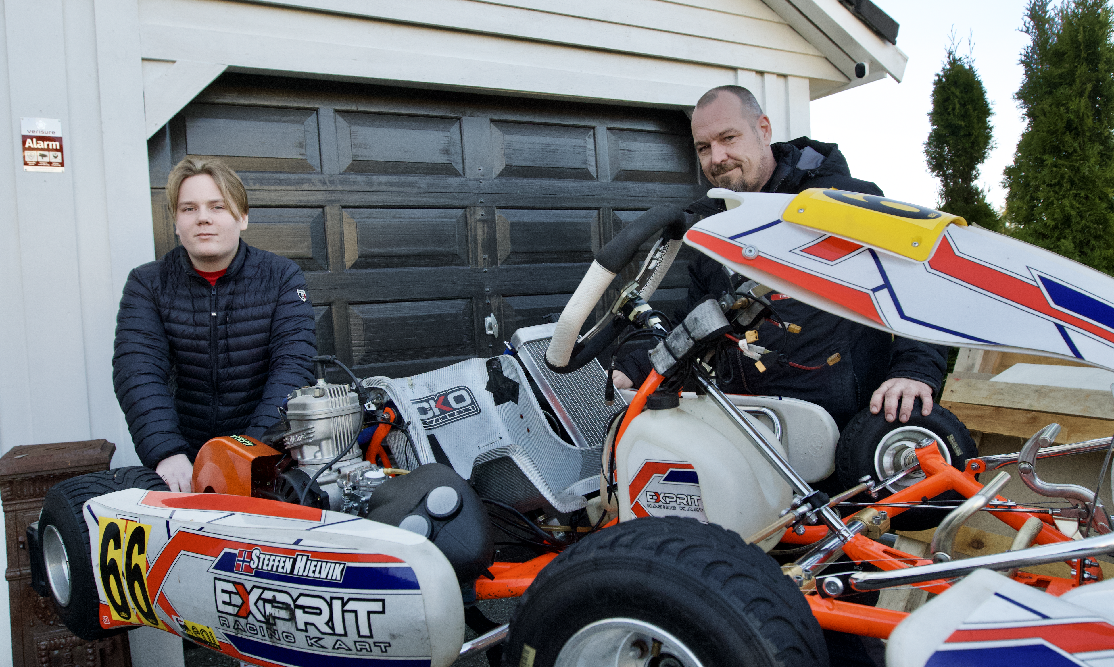 Steffen Knutsen Hjelvik og pappa Rune Hjelvik har hatt mykje moro med go-karten. Foto: Alf-Einar Kvalavåg