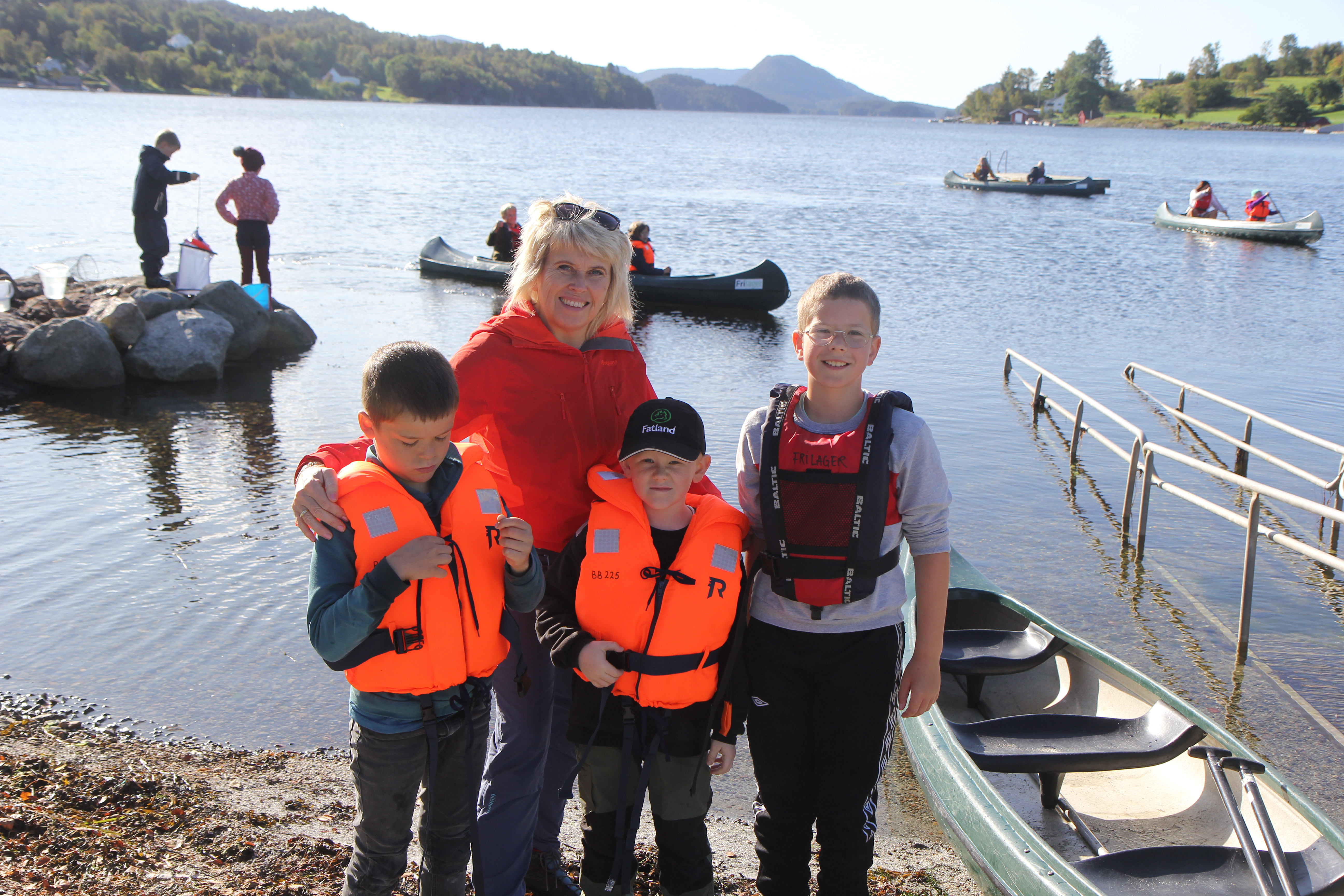 Rektor Grethe Vestbø, Oliver fra 4. klasse, Andreas fra 2. klasse og Marius fra 4. klasse har alle kost seg under friluftsuka. FOTO: Ada SandvigBilde 1 av 5