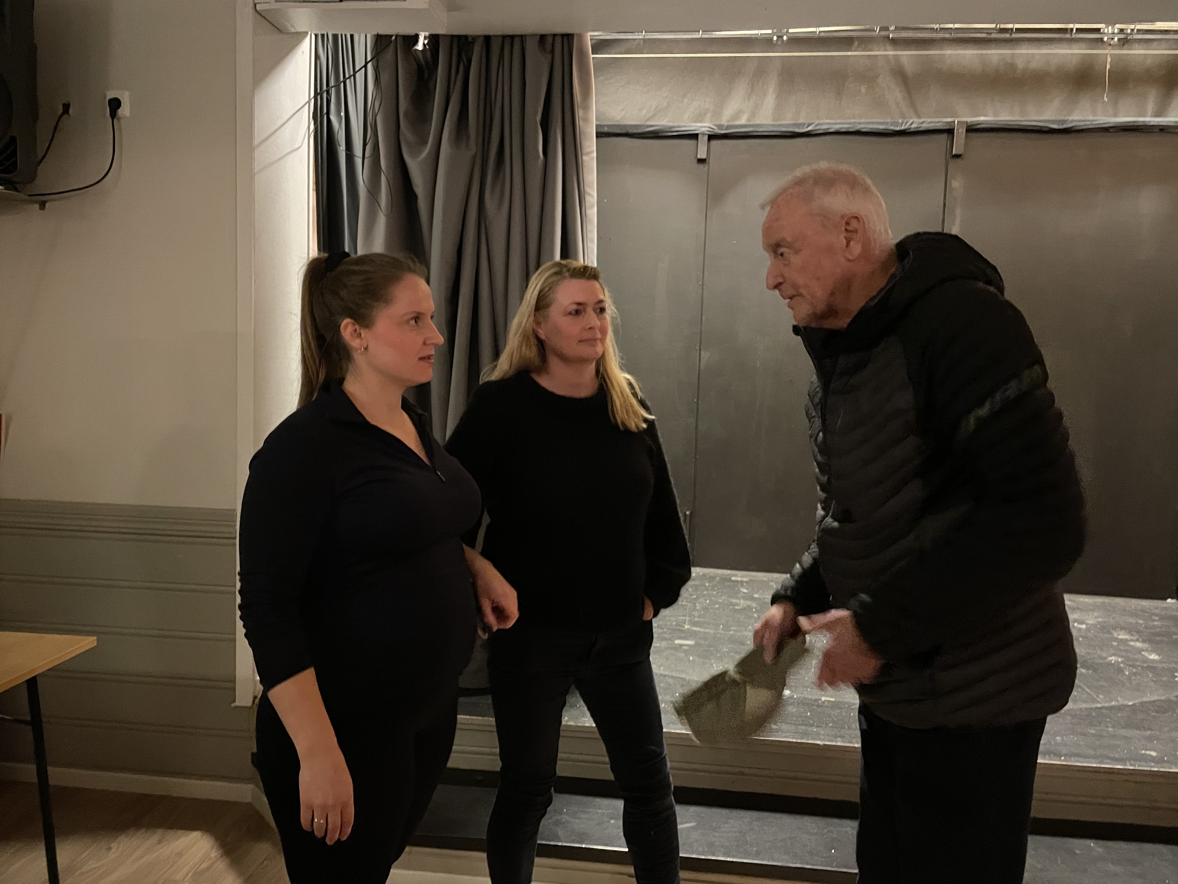 Jorunn Karina Skadsem Gil og Nathalie Yndesdal er initiativtakere til folkemøtet. Her i engasjert samtale med Erik Brinchmann fra Haugesund Turistforening.