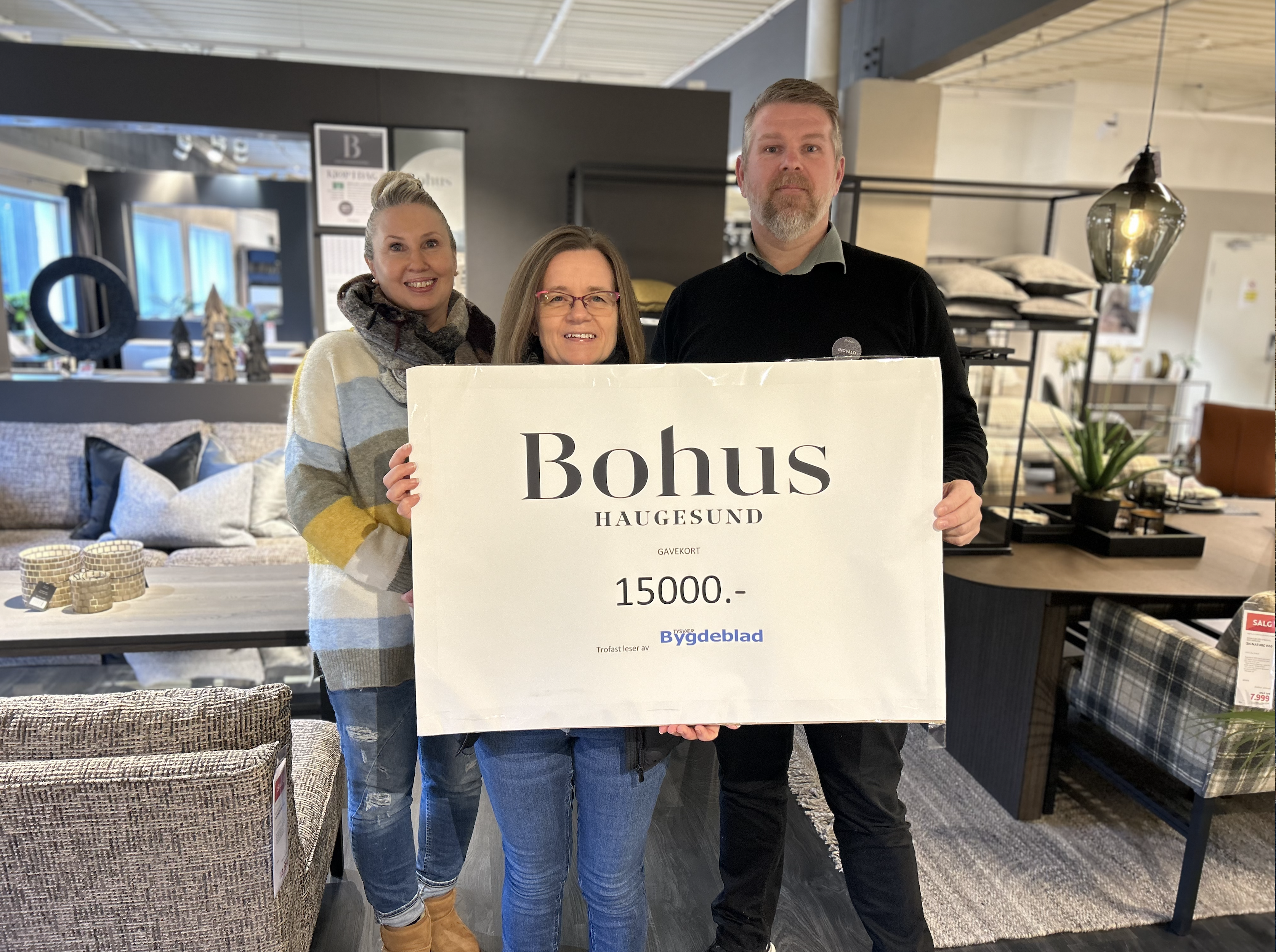 Hvert år trekker vi i Tysvær Bygdeblad en heldig vinner blant våre abonnenter som får et gavekort på 15.000 kroner på Bohus Haugesund. I år var det Nedstrandsbuen Kirsti Torsteinsbø som stakk av med det vinnende loddet.