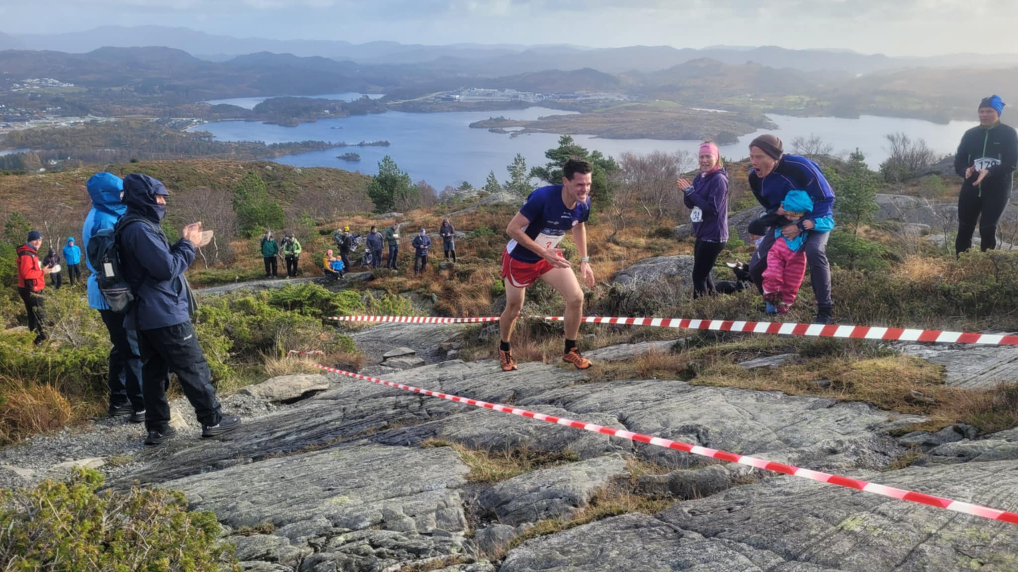 Thomas Finshus var første mann til topps på Helgelandsfjellet. Han brukte åtte minuttar og tre sekund. Foto: Martin Schouwstra