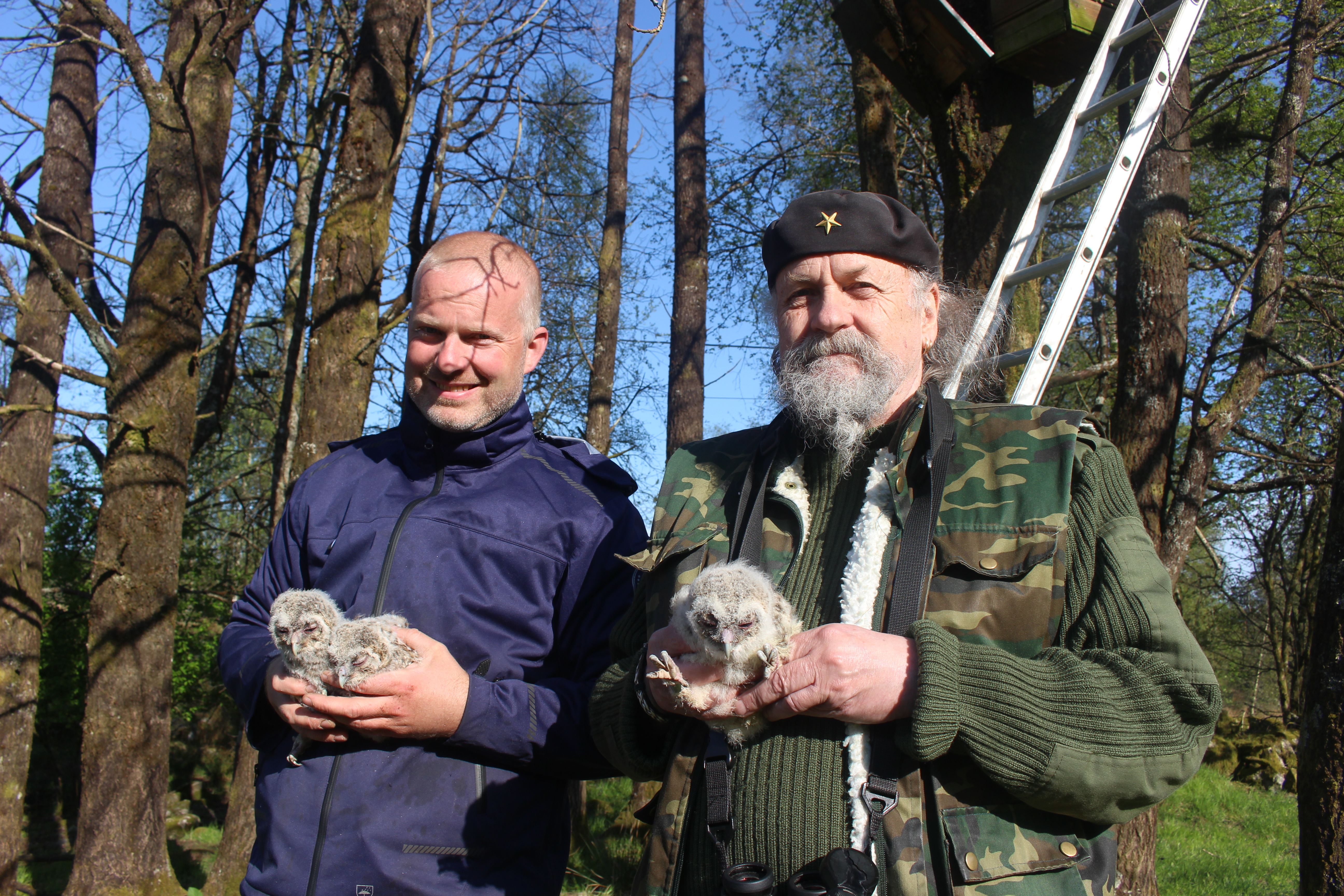 Einar Selvåg og Jarl Skrunes er begge ihuga fugleentusiastar. Kvar vår merker dei fuglar, og særleg merkinga av ugleungar er stas.