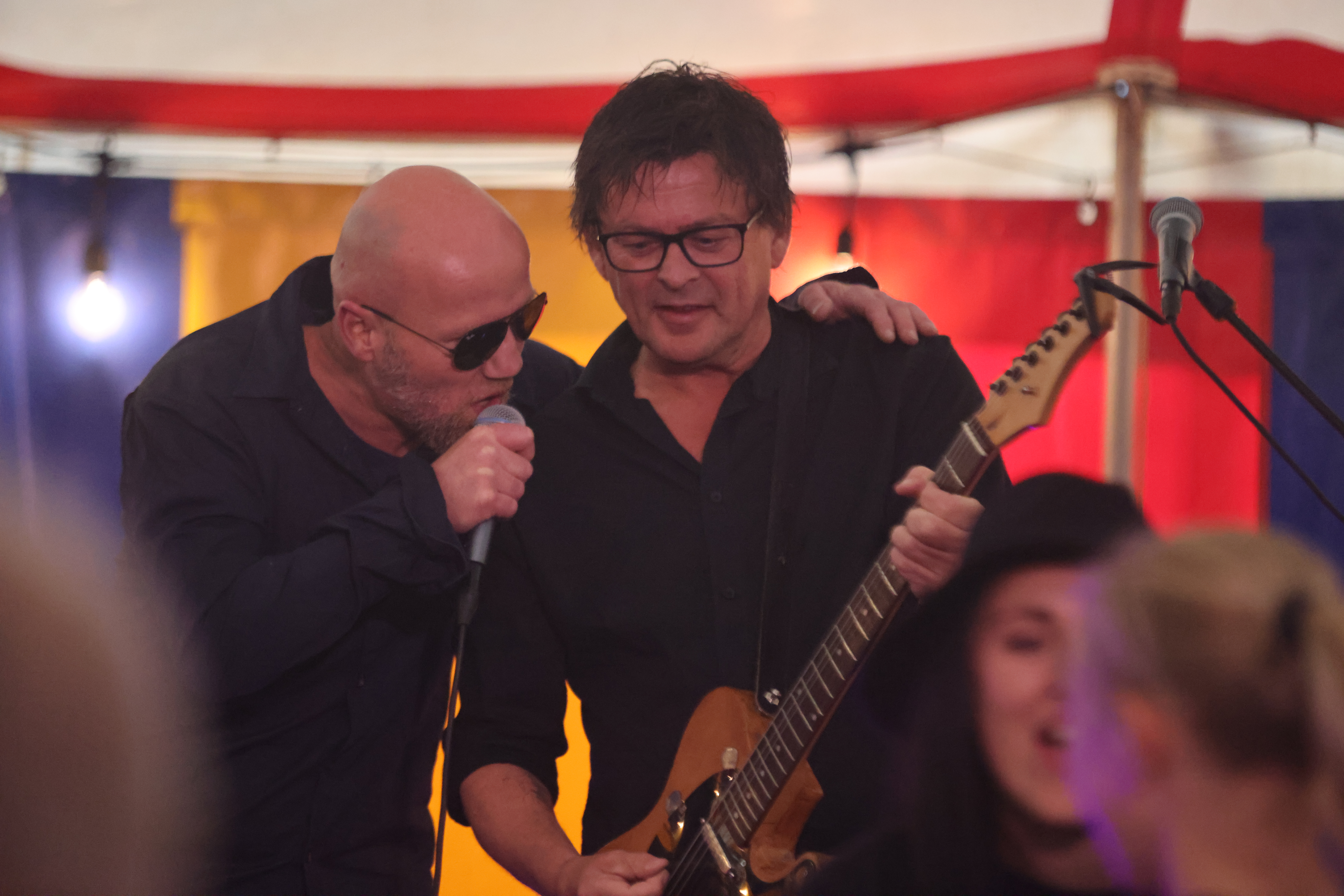 Cato Thorsen gitar og Magne Vikra vokal serverte mange «tunge» hits i teltet på Grindafjord feriesenter i kveld. Foto: Alf-Einar Kvalavåg