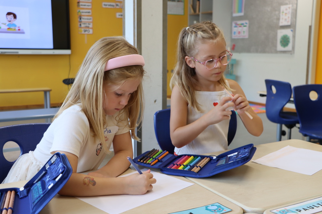 Pia Fossum (t.v) og Ellie Anuglen Ragnvaldjord begynte torsdag i første klasse.