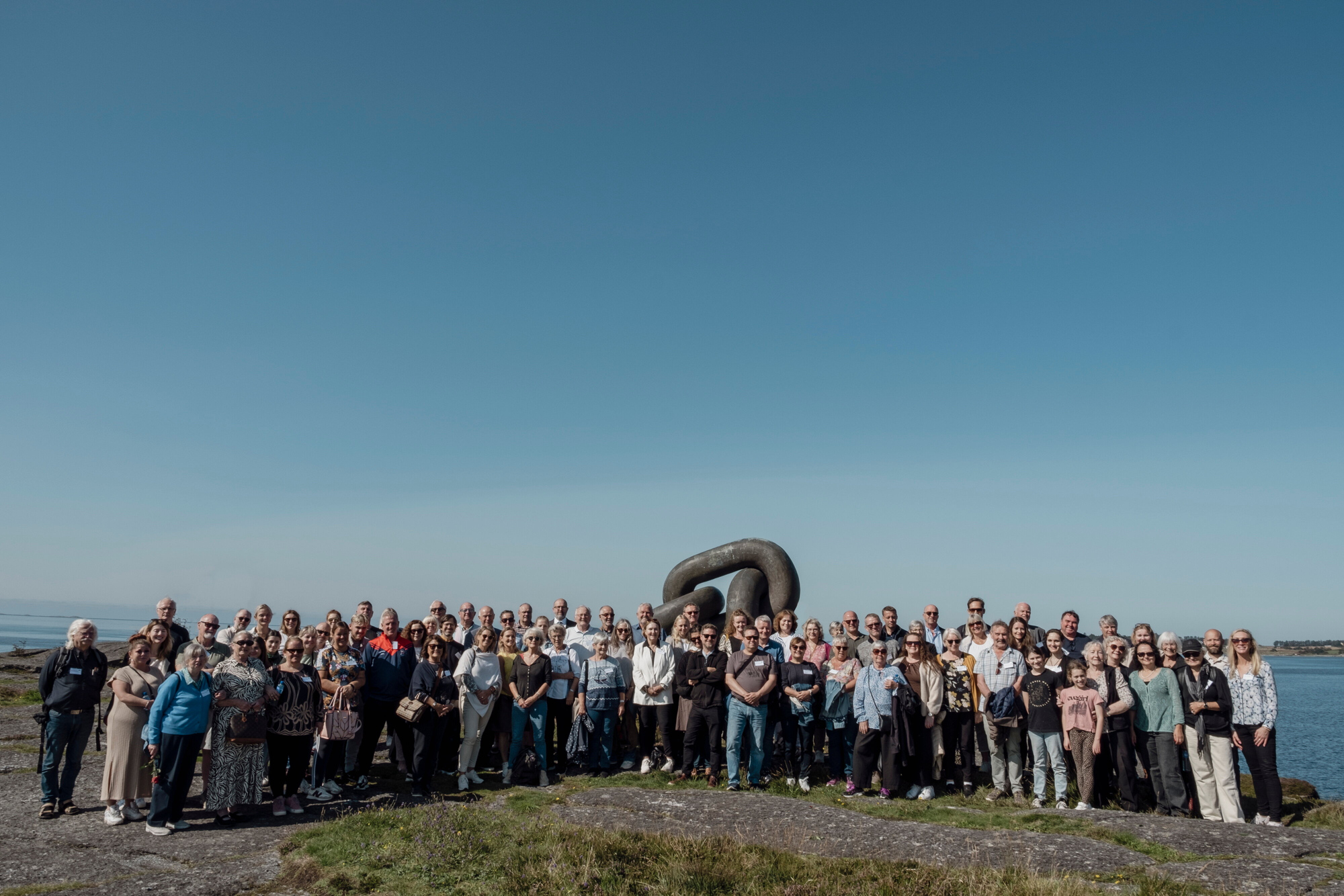 På bildet er etterlatte og overlevende etter Kielland samlet ved monumentet Brutt lenke i Tananger.