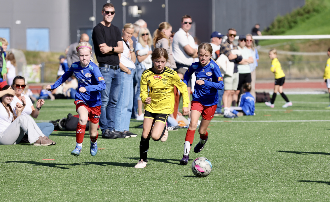 Det ble flere kamper mellom naboklubbene Skjold og Stegaberg. Snart vil disse jentene spille på samme lag om det gode samarbeidet mellom klubbene fortsetter. Foto: Alf-Einar Kvalavåg