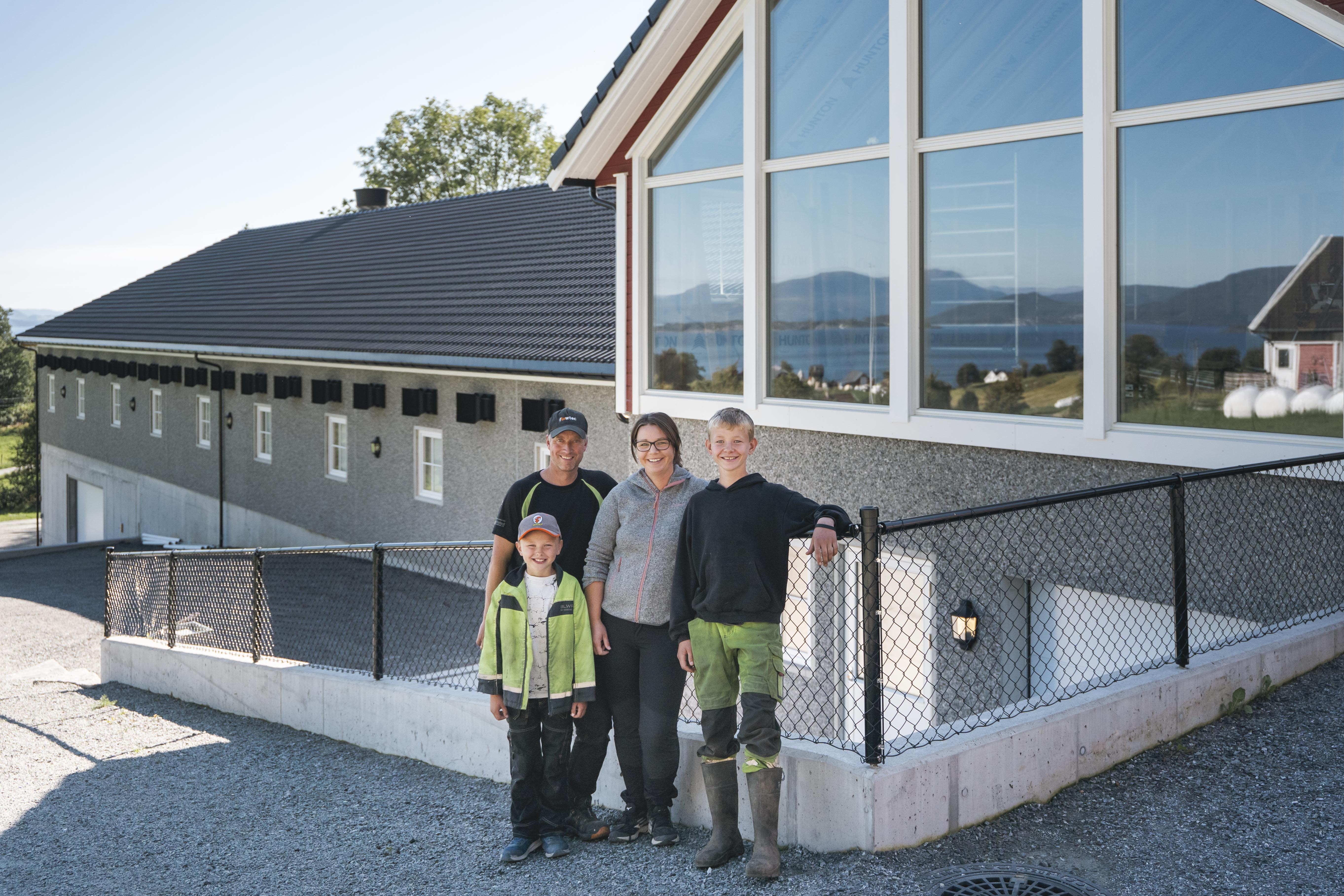 Deler av familien Aksland utenfor bygget. Her skal det bli mye aktivitet i årene som kommer. FOTO: Anna Silgjerd Monstad