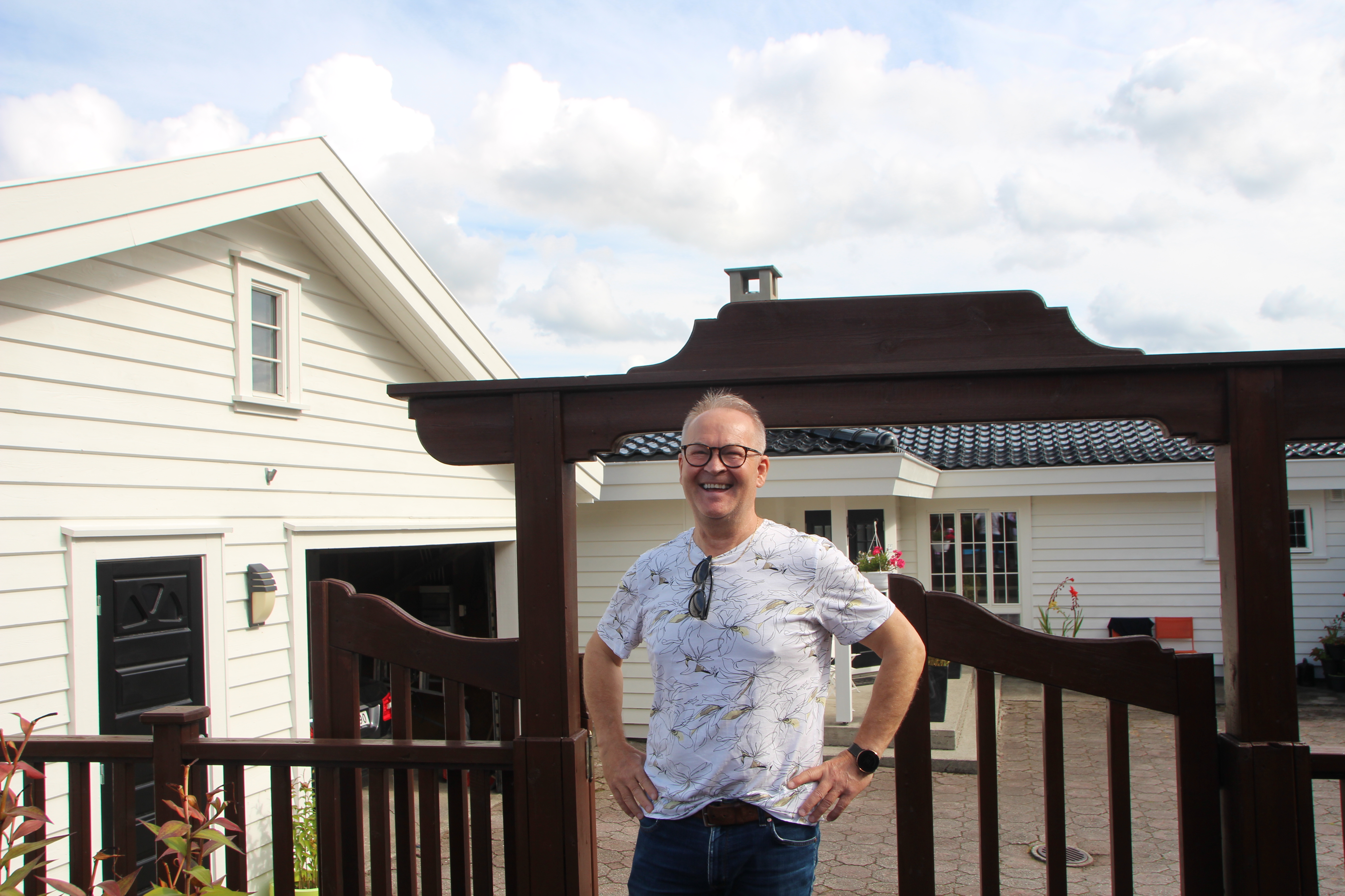 Svein Søderlund har holdt huset i Stakkestadvegen i 40 år. Nå legger han malekost og lukeredskaper på hylla, i hvert fall for en stund. (Dronefoto på forsiden: Vestbris) FOTO: Sarah Elise Falkeid